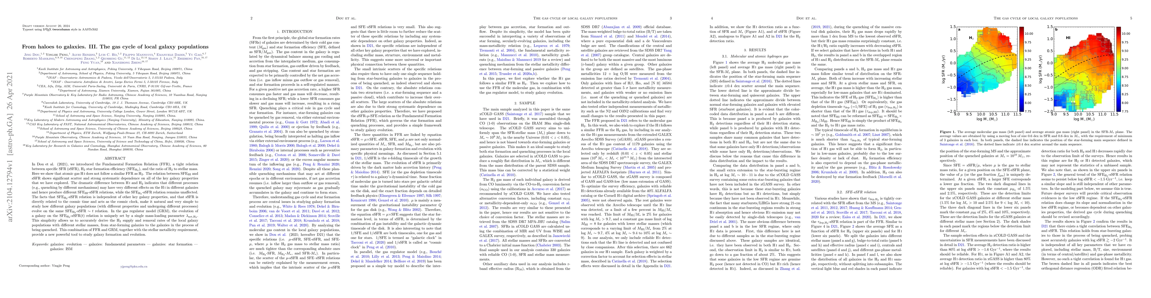 This paper explores the differences in the gas cycle between atomic gas (HI) and molecular gas (H$_2$) in local galaxies, revealing that HI does not follow the same formation relation as H$_2$. The study finds that the H$_2$ star formation efficiency is independent of galaxy properties and cosmic time, providing a robust framework for understanding galaxy evolution.