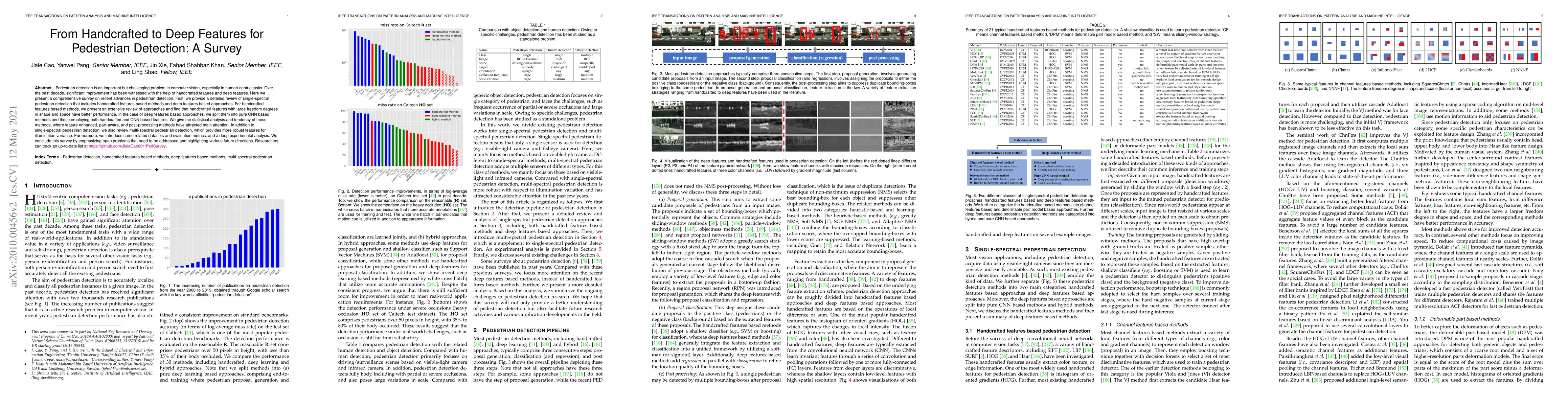 This survey reviews advancements in pedestrian detection, comparing handcrafted feature-based methods with deep learning approaches, including CNN-based and hybrid methods. It highlights the strengths of deep features and discusses open challenges and future research directions.