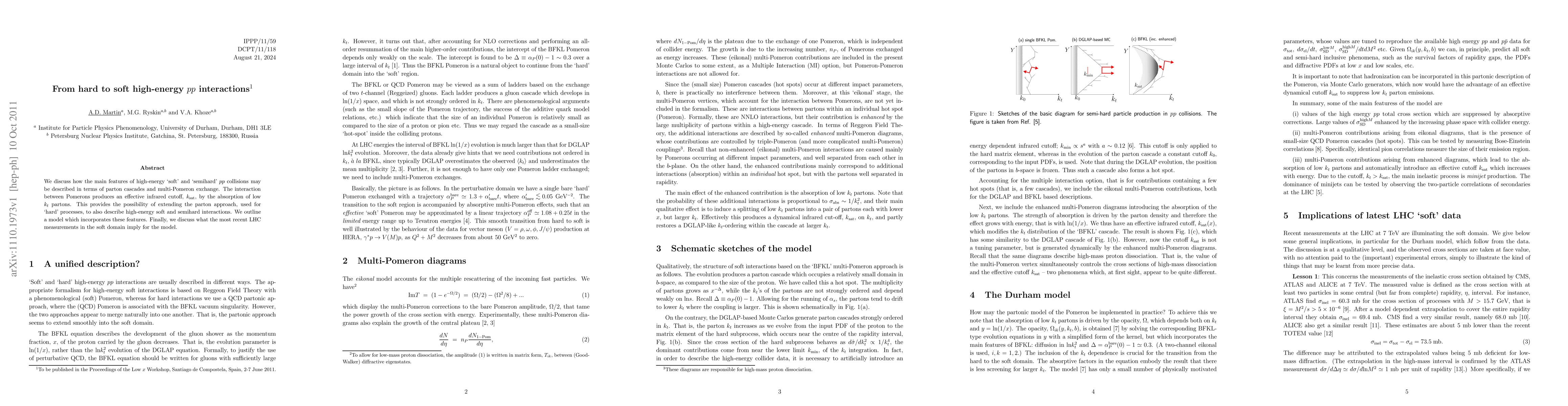 We discuss how the main features of high-energy `soft' and `semihard' pp collisions may be described in terms of parton cascades and multi-Pomeron exchange. The interaction between Pomerons produces an effective infrared cutoff, k_sat, by the absorption of low k_t partons. This provides the possibility of extending the parton approach, used for `hard' processes, to also describe high-energy soft and semihard interactions. We outline a model which incorporates these features. Finally, we discuss what the most recent LHC measurements in the soft domain imply for the model.