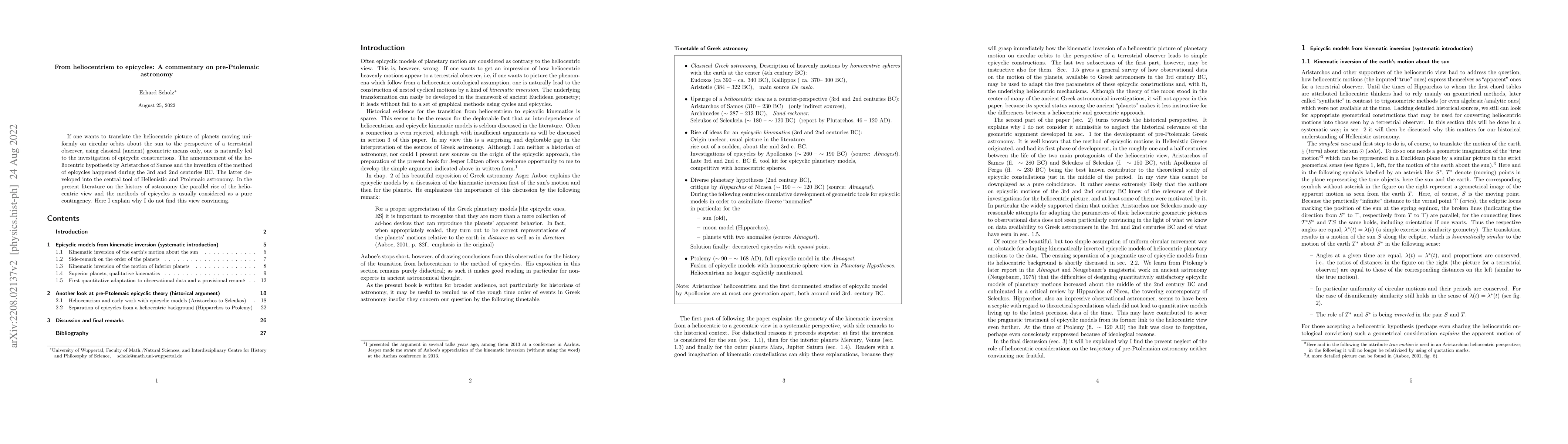 This paper critiques the conventional view that the rise of heliocentrism and epicycles in ancient astronomy was purely coincidental, arguing instead for a more interconnected development of these concepts. It explores the transition from heliocentric ideas to the use of epicycles through classical geometric methods.