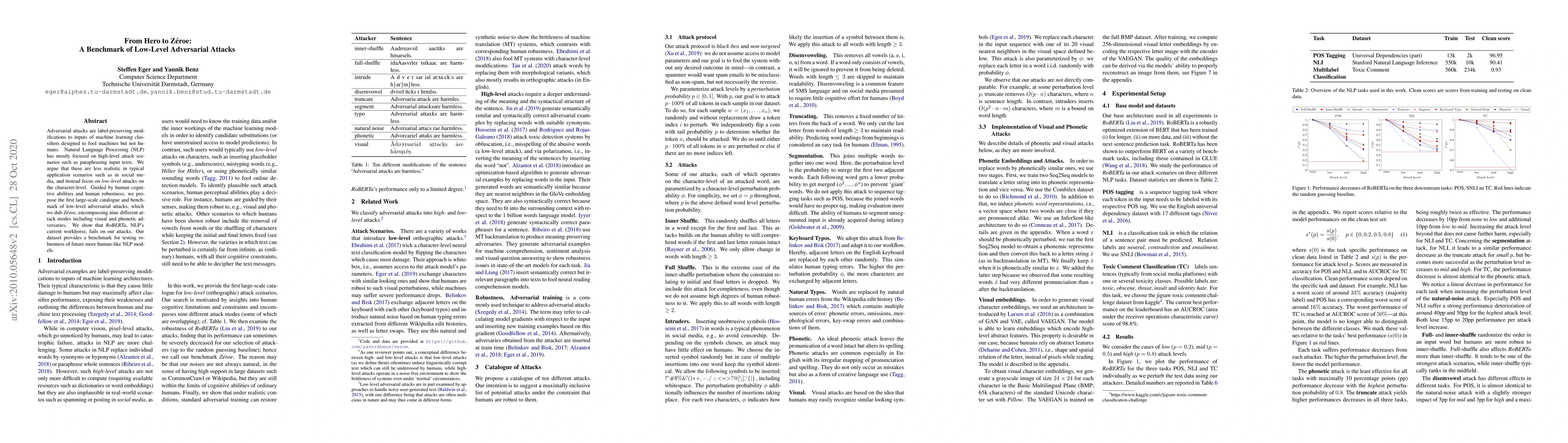 This paper introduces Z\'eroe, a benchmark for low-level adversarial attacks in NLP, focusing on character-level modifications to fool machine classifiers. It demonstrates that current NLP models, like RoBERTa, struggle with these attacks, highlighting the need for more human-like robustness in future models.