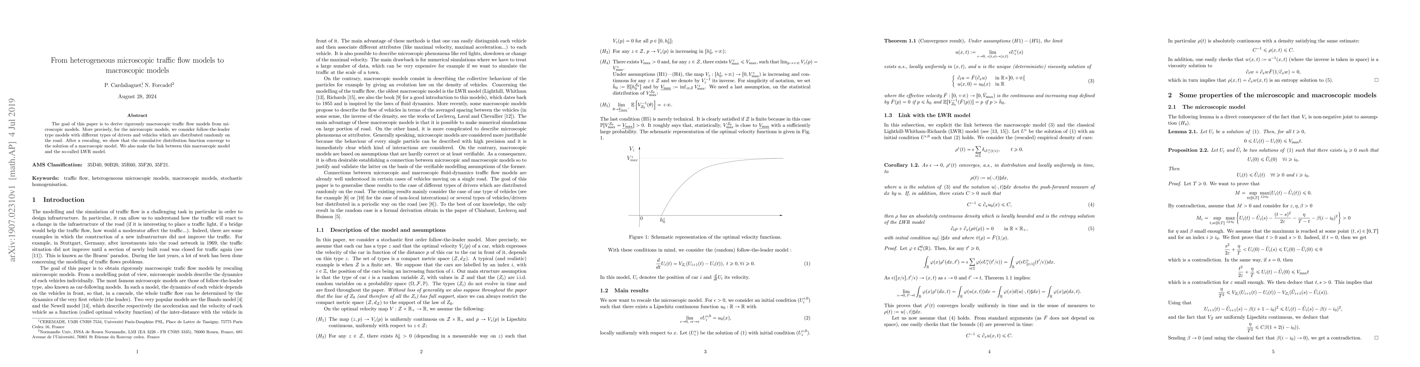 The paper presents a rigorous mathematical framework for connecting microscopic and macroscopic traffic flow models, providing a solid theoretical basis for model reduction.