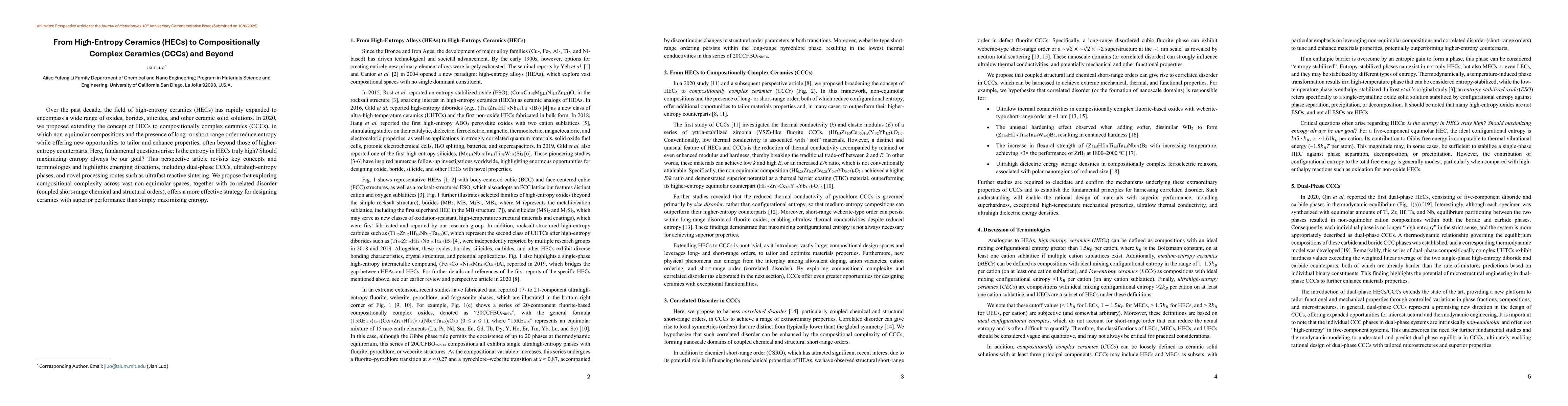 Over the past decade, the field of high-entropy ceramics (HECs) has rapidly expanded to encompass a wide range of oxides, borides, silicides, and other ceramic solid solutions. In 2020, we proposed extending the concept of HECs to compositionally complex ceramics (CCCs), in which non-equimolar compositions and the presence of long- or short-range order reduce entropy while offering new opportunities to tailor and enhance properties, often beyond those of higher-entropy counterparts. Here, fundamental questions arise: Is the entropy in HECs truly high? Should maximizing entropy always be our goal? This perspective article revisits key concepts and terminologies and highlights emerging directions, including dual-phase CCCs, ultrahigh-entropy phases, and novel processing routes such as ultrafast reactive sintering. We propose that exploring compositional complexity across vast non-equimolar spaces, together with correlated disorder (coupled short-range chemical and structural orders), offers a more effective strategy for designing ceramics with superior performance than simply maximizing entropy.