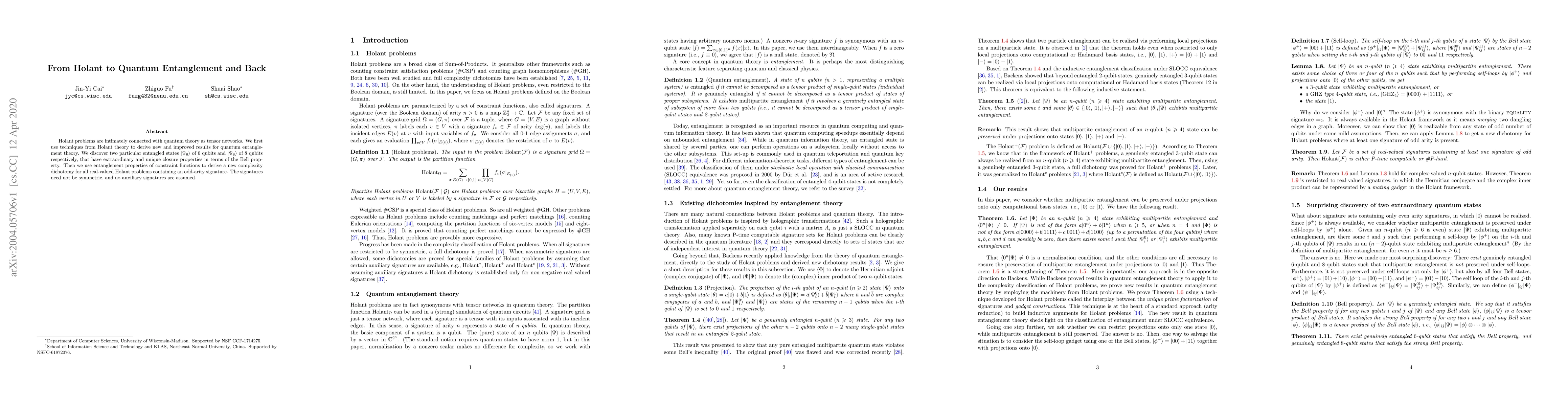 Holant problems are intimately connected with quantum theory as tensor networks. We first use techniques from Holant theory to derive new and improved results for quantum entanglement theory. We discover two particular entangled states $|{\Psi_6}\rangle$ of 6 qubits and $|{\Psi_8}\rangle$ of 8 qubits respectively, that have extraordinary and unique closure properties in terms of the Bell property. Then we use entanglement properties of constraint functions to derive a new complexity dichotomy for all real-valued Holant problems containing an odd-arity signature. The signatures need not be symmetric, and no auxiliary signatures are assumed.