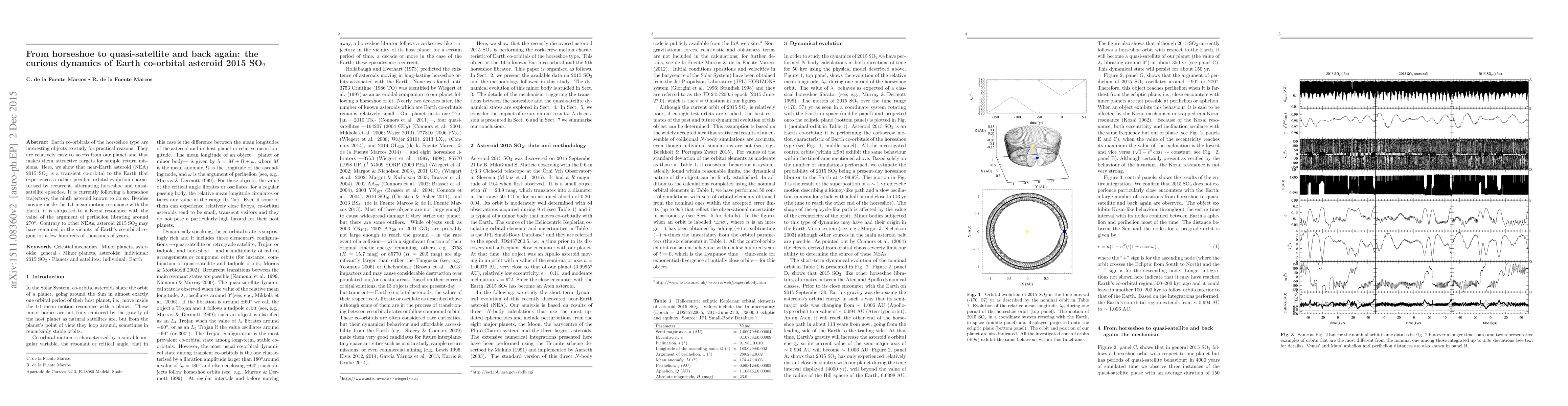 This paper investigates the dynamic behavior of near-Earth asteroid 2015 SO2, revealing its transient co-orbital nature characterized by alternating horseshoe and quasi-satellite orbits. Unlike other asteroids, 2015 SO2 may have stayed near Earth's co-orbital region for hundreds of thousands of years due to its unique orbital dynamics.