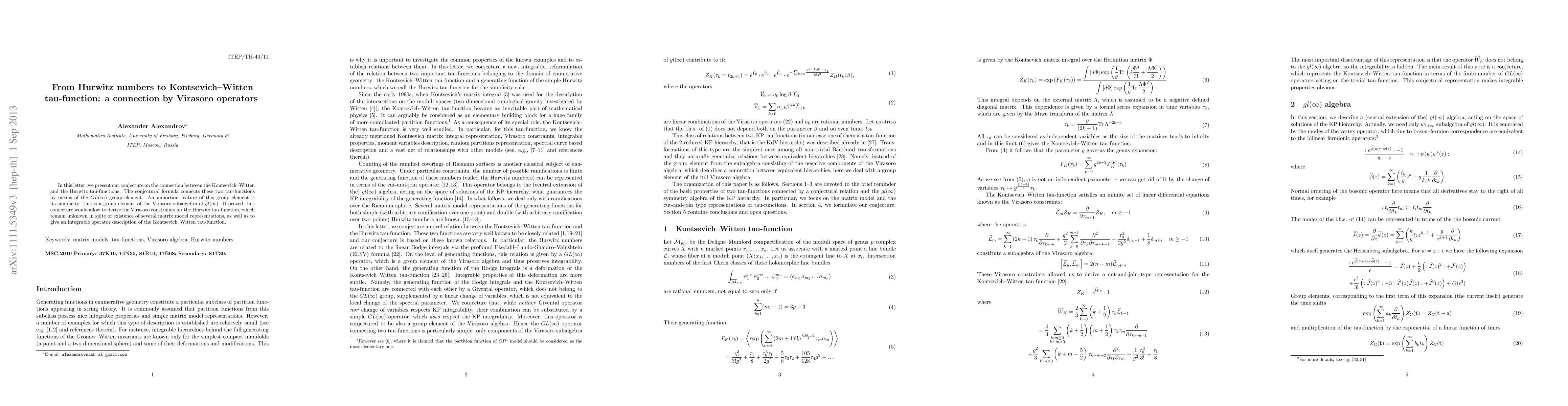 This paper proposes a conjecture linking the Kontsevich-Witten tau-function to the Hurwitz tau-function via a $GL(\infty)$ group element from the Virasoro subalgebra. If validated, the conjecture would reveal Virasoro constraints for the Hurwitz tau-function and provide an integrable operator description for the Kontsevich-Witten tau-function.