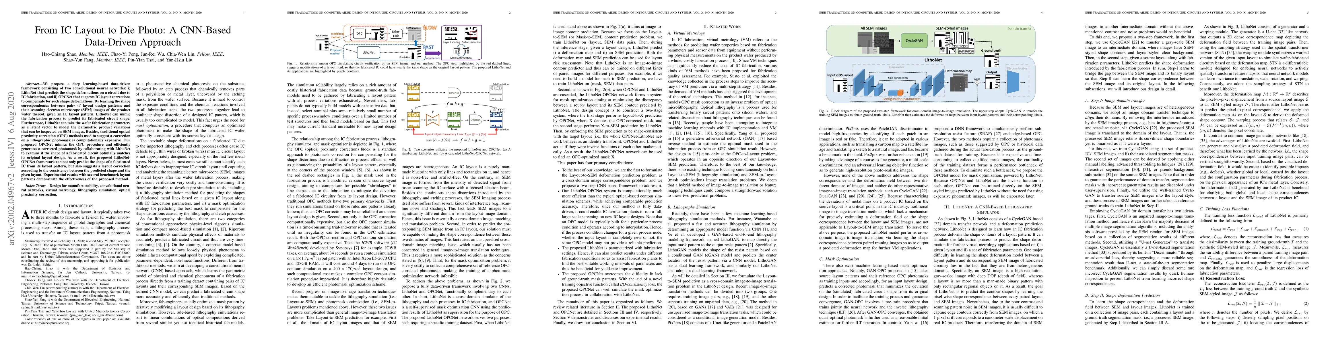 This paper proposes a deep learning framework using two convolutional neural networks to predict IC layout deformations and suggest layout corrections. LithoNet predicts circuit shape deformations due to fabrication, while OPCNet efficiently generates corrected photomasks, improving the consistency between the predicted and original layout designs. Experimental results show the method's effectiveness.