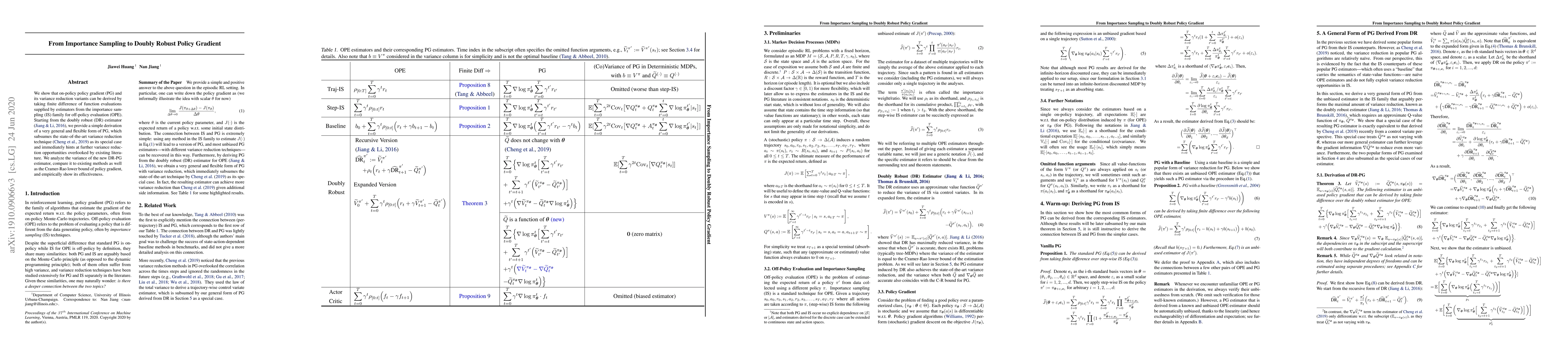 This paper derives a new doubly robust policy gradient (DR-PG) method from importance sampling techniques, showing it encompasses existing variance reduction methods and offers potential for further improvements. The DR-PG estimator is analyzed for variance, compared with existing methods, and demonstrated to be effective in empirical tests.