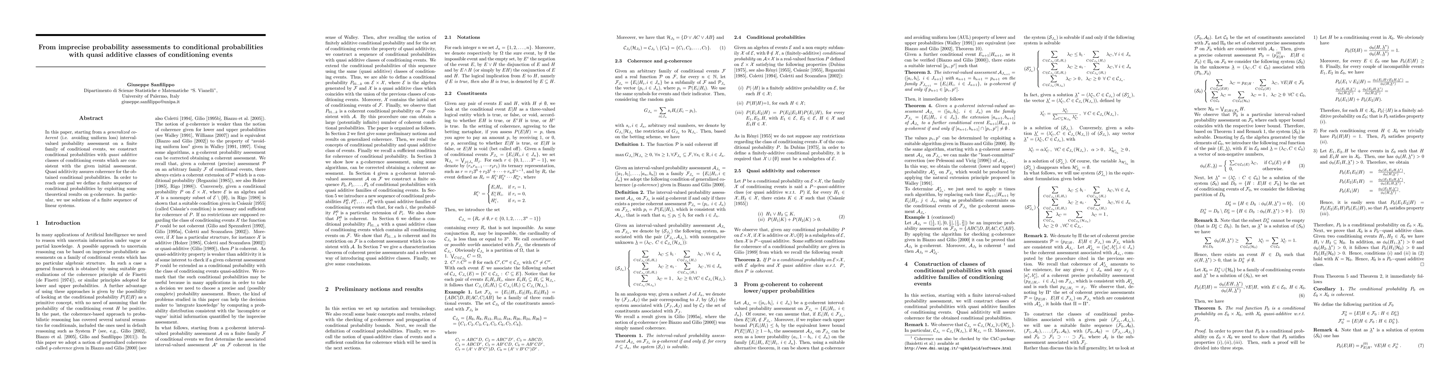 This paper constructs conditional probabilities from imprecise interval-valued probability assessments on conditional events, ensuring coherence through quasi-additivity. The method involves defining a sequence of conditional probabilities using solutions to linear systems derived from g-coherence theory.