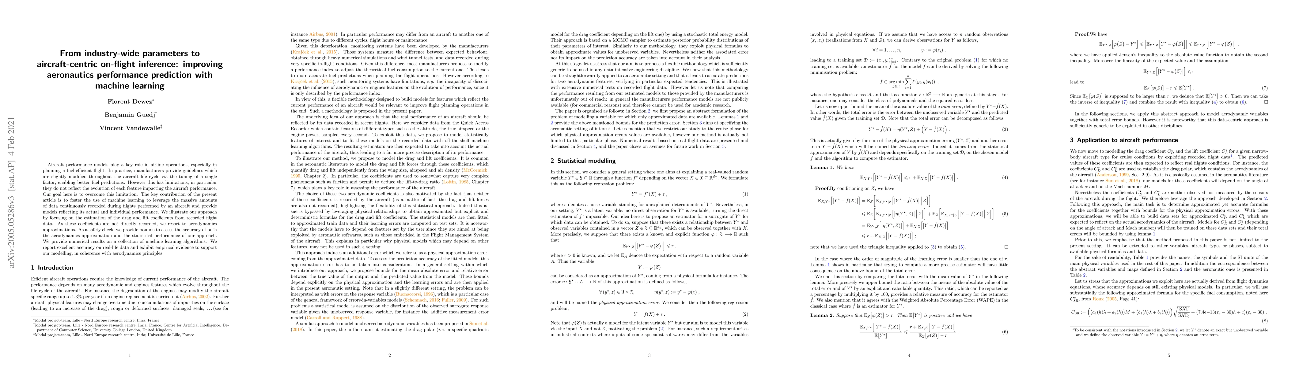 Aircraft performance models play a key role in airline operations, especially in planning a fuel-efficient flight. In practice, manufacturers provide guidelines which are slightly modified throughout the aircraft life cycle via the tuning of a single factor, enabling better fuel predictions. However this has limitations, in particular they do not reflect the evolution of each feature impacting the aircraft performance. Our goal here is to overcome this limitation. The key contribution of the present article is to foster the use of machine learning to leverage the massive amounts of data continuously recorded during flights performed by an aircraft and provide models reflecting its actual and individual performance. We illustrate our approach by focusing on the estimation of the drag and lift coefficients from recorded flight data. As these coefficients are not directly recorded, we resort to aerodynamics approximations. As a safety check, we provide bounds to assess the accuracy of both the aerodynamics approximation and the statistical performance of our approach. We provide numerical results on a collection of machine learning algorithms. We report excellent accuracy on real-life data and exhibit empirical evidence to support our modelling, in coherence with aerodynamics principles.