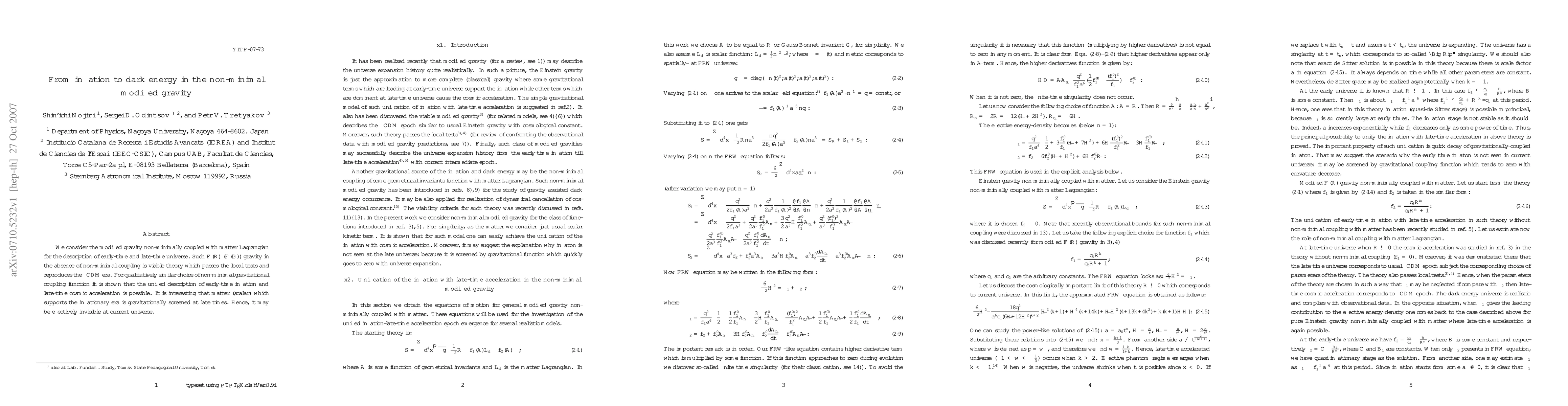 We consider the modified gravity non-minimally coupled with matter Lagrangian for the description of early-time and late-time universe. Such $F(R)$ ($F(G)$) gravity in the absence of non-minimal coupling is viable theory which passes the local tests and reproduces the $\Lambda$CDM era. For qualitatively similar choice of non-minimal gravitational coupling function it is shown that the unified description of early-time inflation and late-time cosmic acceleration is possible. It is interesting that matter (scalar) which supports the inflationary era is gravitationally screened at late times. Hence, it may be effectively invisible at current universe.
