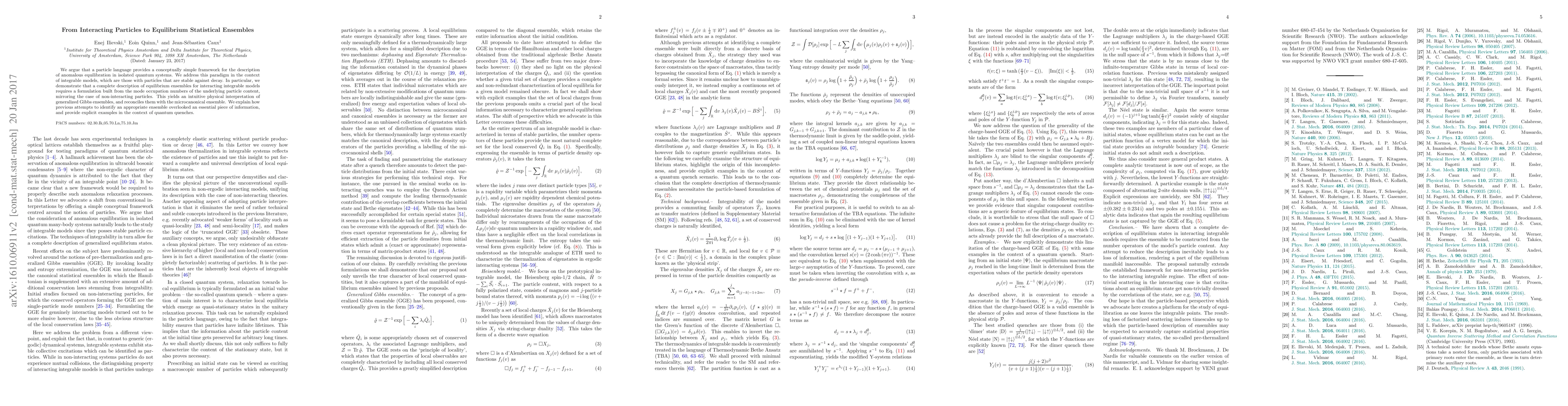 We argue that a particle language provides a conceptually simple framework for the description of anomalous equilibration in isolated quantum systems. We address this paradigm in the context of integrable models, which are those with particles that are stable against decay. In particular, we demonstrate that a complete description of equilibrium ensembles for interacting integrable models requires a formulation built from the mode occupation numbers of the underlying particle content, mirroring the case of non-interacting particles. This yields an intuitive physical interpretation of generalized Gibbs ensembles, and reconciles them with the microcanonical ensemble. We explain how previous attempts to identify an appropriate ensemble overlooked an essential piece of information, and provide explicit examples in the context of quantum quenches.
