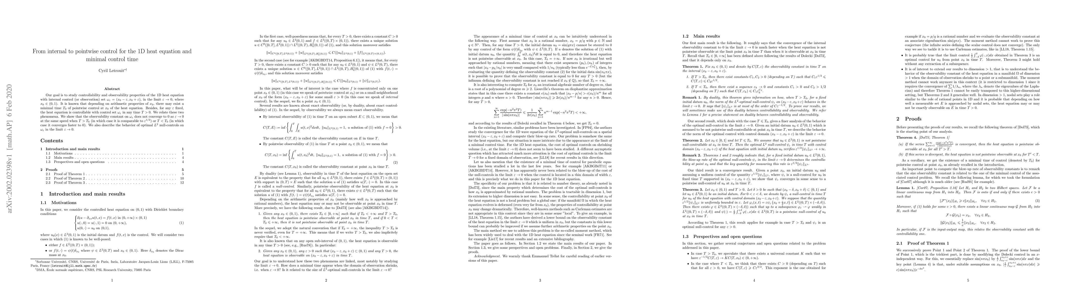 pointwise control at $x_{0}$ of the heat equation. Besides, for any