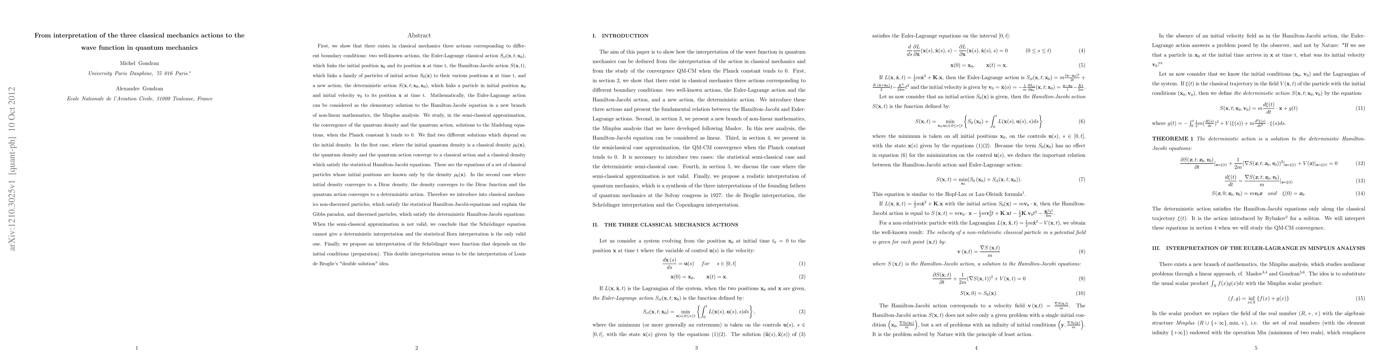 This paper explores three classical mechanics actions and their convergence to quantum mechanics in the semi-classical limit, revealing two distinct solutions: one leading to classical statistical mechanics and the other to deterministic mechanics. It proposes a dual interpretation of the Schrödinger wave function based on initial conditions.