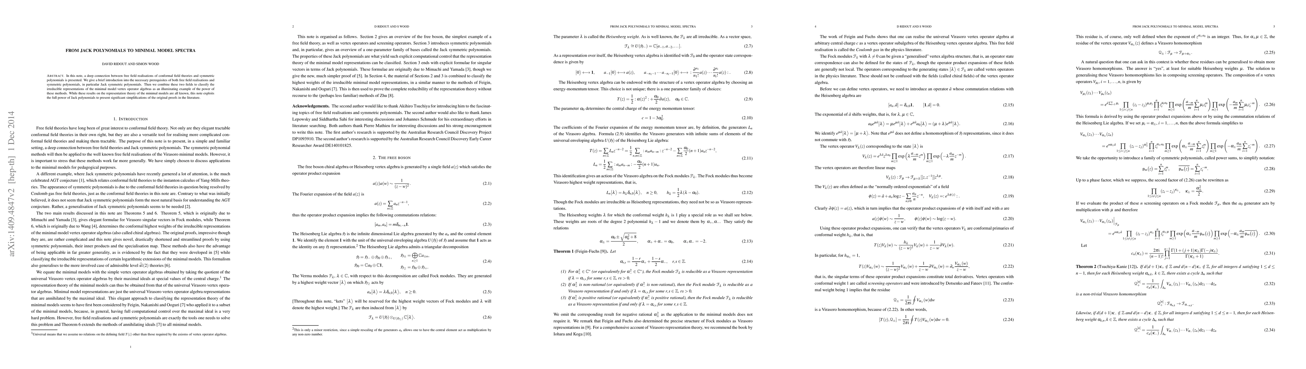 This paper explores the connection between conformal field theories and symmetric polynomials, particularly Jack polynomials, to simplify and classify the irreducible representations of minimal model vertex operator algebras, offering significant improvements over existing proofs.