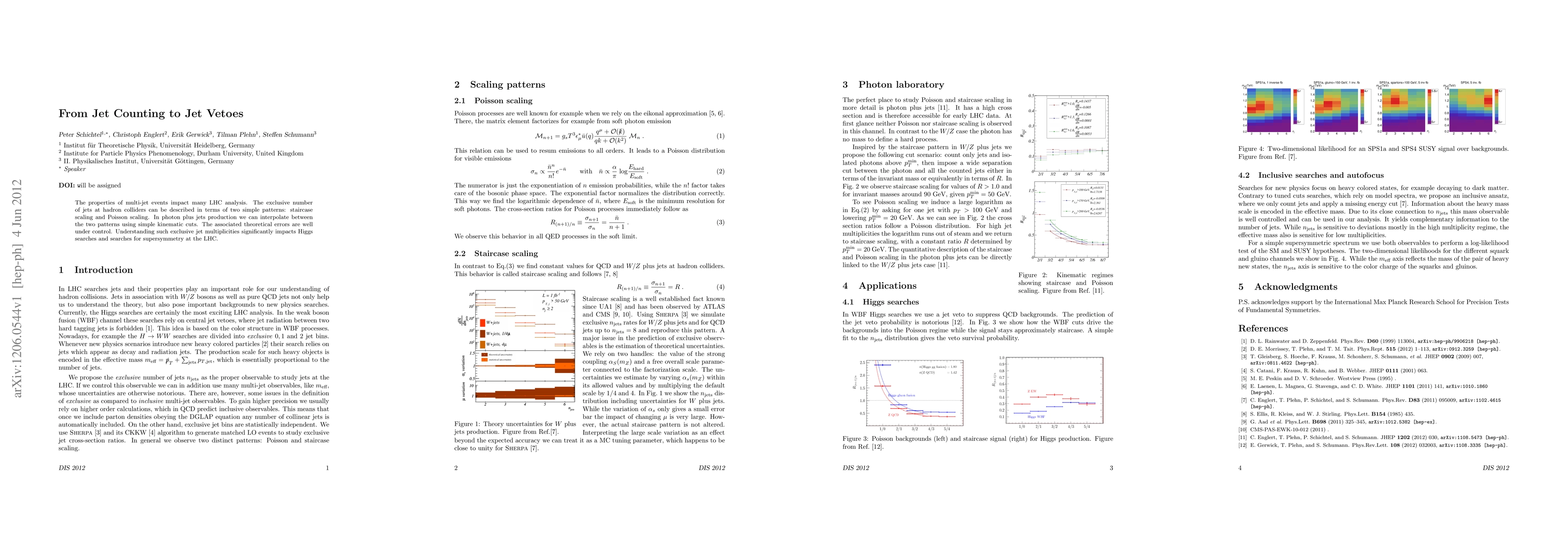 The properties of multi-jet events impact many LHC analysis. The exclusive number of jets at hadron colliders can be described in terms of two simple patterns: staircase scaling and Poisson scaling. In photon plus jets production we can interpolate between the two patterns using simple kinematic cuts. The associated theoretical errors are well under control. Understanding such exclusive jet multiplicities significantly impacts Higgs searches and searches for supersymmetry at the LHC.