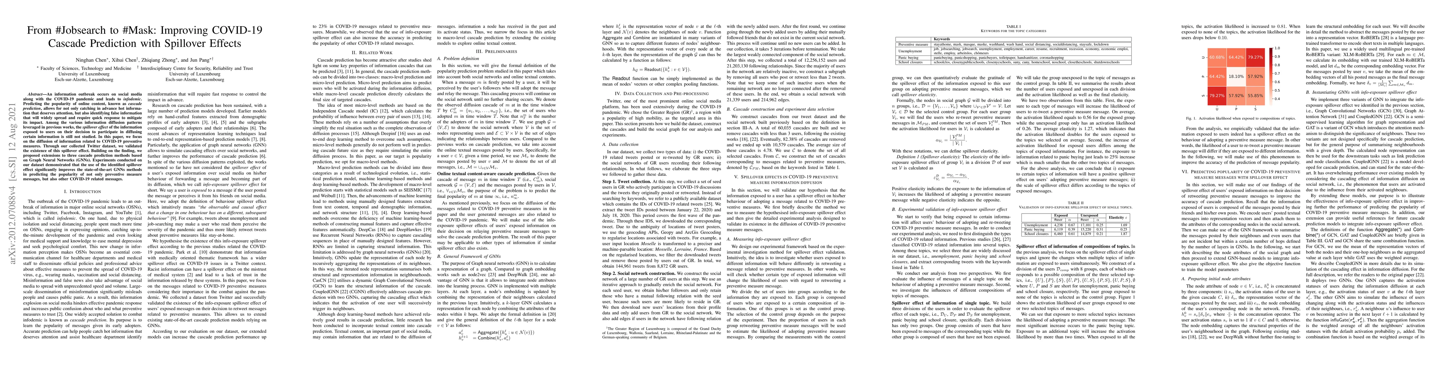 This work differs from existing research by considering the info-exposure spillover effect, which has not been studied in previous cascade prediction methods, and by applying it to improve the prediction accuracy of COVID-19 related messages on social media.