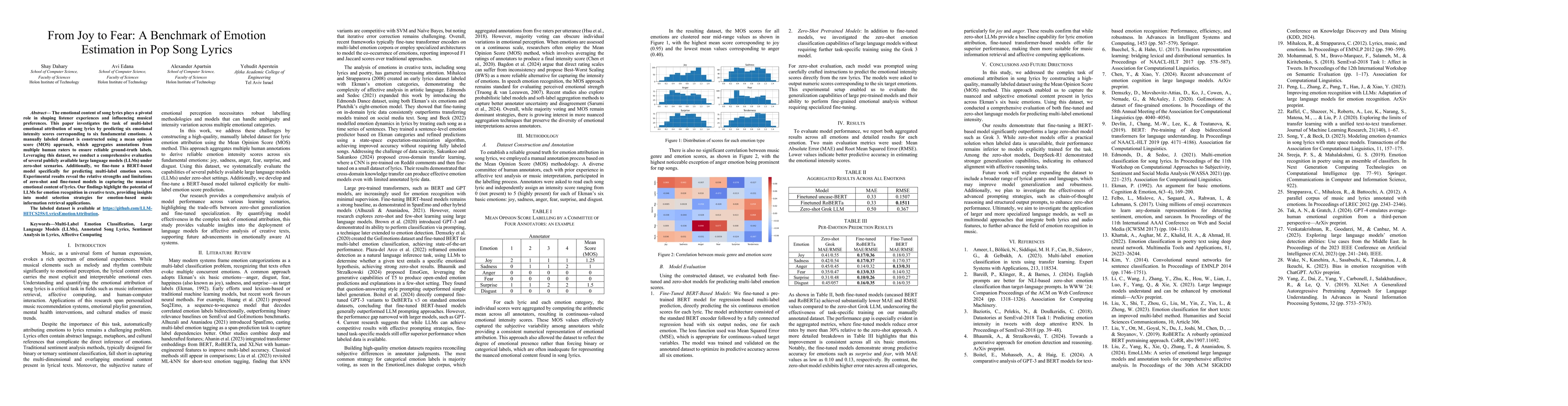 The emotional content of song lyrics plays a pivotal role in shaping listener experiences and influencing musical preferences. This paper investigates the task of multi-label emotional attribution of song lyrics by predicting six emotional intensity scores corresponding to six fundamental emotions. A manually labeled dataset is constructed using a mean opinion score (MOS) approach, which aggregates annotations from multiple human raters to ensure reliable ground-truth labels. Leveraging this dataset, we conduct a comprehensive evaluation of several publicly available large language models (LLMs) under zero-shot scenarios. Additionally, we fine-tune a BERT-based model specifically for predicting multi-label emotion scores. Experimental results reveal the relative strengths and limitations of zero-shot and fine-tuned models in capturing the nuanced emotional content of lyrics. Our findings highlight the potential of LLMs for emotion recognition in creative texts, providing insights into model selection strategies for emotion-based music information retrieval applications. The labeled dataset is available at https://github.com/LLM-HITCS25S/LyricsEmotionAttribution.