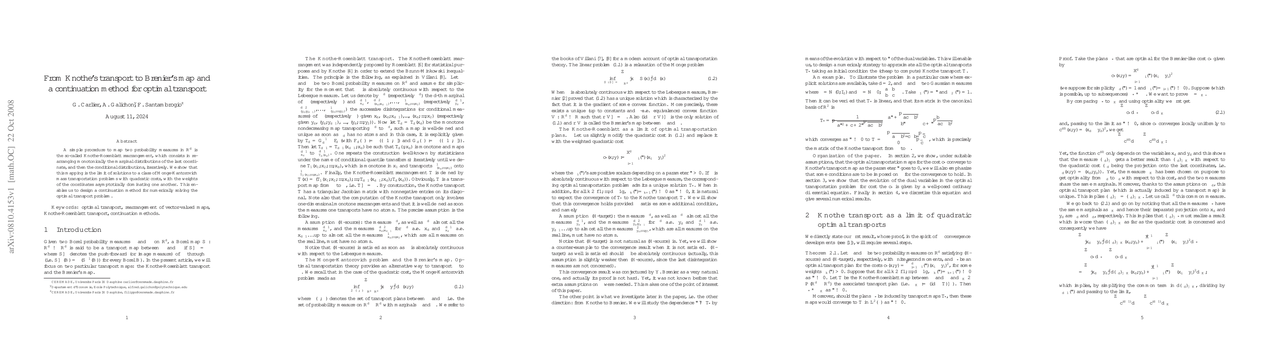 Summary: The paper presents the Knothe-Rosenblatt rearrangement as a limit of solutions to Monge-Kantorovich optimal transport problems, and uses this insight to develop a continuation method for solving optimal transport problems numerically.