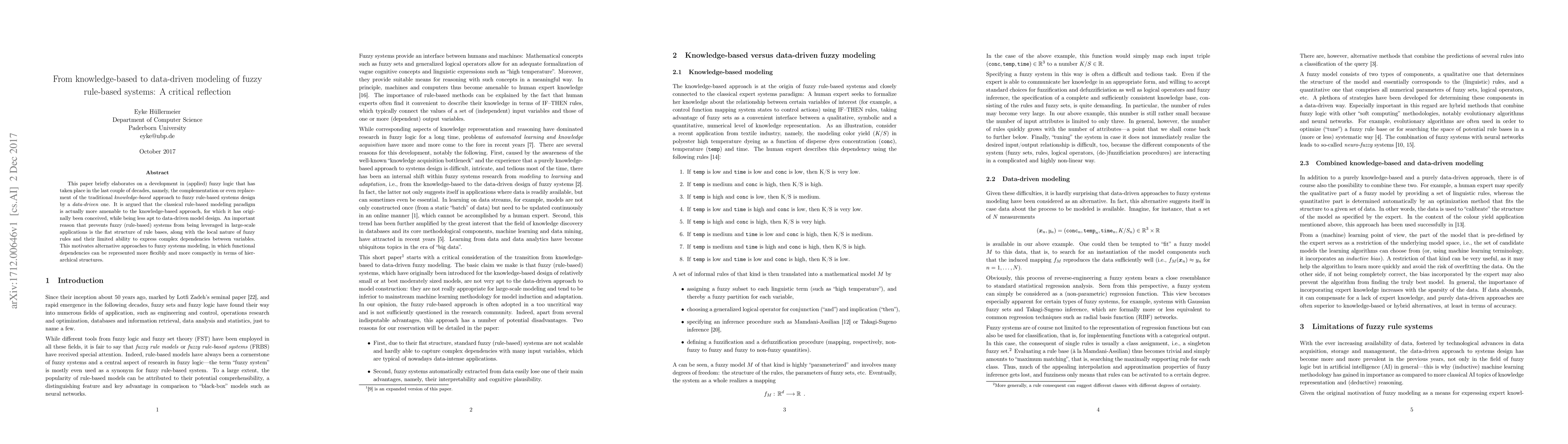 This paper briefly elaborates on a development in (applied) fuzzy logic that has taken place in the last couple of decades, namely, the complementation or even replacement of the traditional knowledge-based approach to fuzzy rule-based systems design by a data-driven one. It is argued that the classical rule-based modeling paradigm is actually more amenable to the knowledge-based approach, for which it has originally been conceived, while being less apt to data-driven model design. An important reason that prevents fuzzy (rule-based) systems from being leveraged in large-scale applications is the flat structure of rule bases, along with the local nature of fuzzy rules and their limited ability to express complex dependencies between variables. This motivates alternative approaches to fuzzy systems modeling, in which functional dependencies can be represented more flexibly and more compactly in terms of hierarchical structures.
