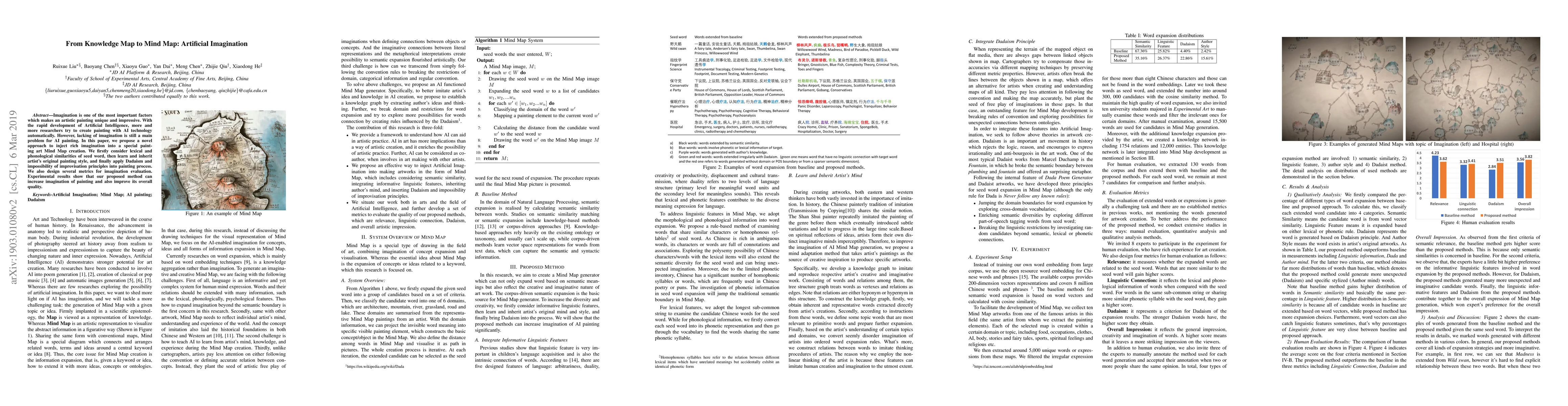 Imagination is one of the most important factors which makes an artistic painting unique and impressive. With the rapid development of Artificial Intelligence, more and more researchers try to create painting with AI technology automatically. However, lacking of imagination is still a main problem for AI painting. In this paper, we propose a novel approach to inject rich imagination into a special painting art Mind Map creation. We firstly consider lexical and phonological similarities of seed word, then learn and inherit original painting style of the author, and finally apply Dadaism and impossibility of improvisation principles into painting process. We also design several metrics for imagination evaluation. Experimental results show that our proposed method can increase imagination of painting and also improve its overall quality.