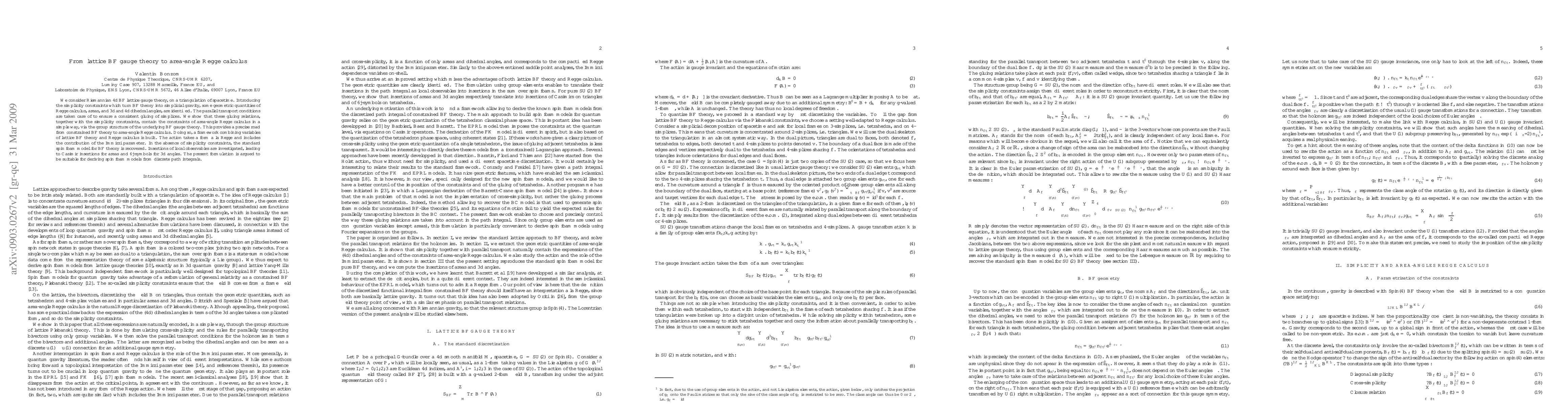We consider Riemannian 4d BF lattice gauge theory, on a triangulation of spacetime. Introducing the simplicity constraints which turn BF theory into simplicial gravity, some geometric quantities of Regge calculus, areas, and 3d and 4d dihedral angles, are identified. The parallel transport conditions are taken care of to ensure a consistent gluing of simplices. We show that these gluing relations, together with the simplicity constraints, contain the constraints of area-angle Regge calculus in a simple way, via the group structure of the underlying BF gauge theory. This provides a precise road from constrained BF theory to area-angle Regge calculus. Doing so, a framework combining variables of lattice BF theory and Regge calculus is built. The action takes a form {\it \`a la Regge} and includes the contribution of the Immirzi parameter. In the absence of simplicity constraints, the standard spin foam model for BF theory is recovered. Insertions of local observables are investigated, leading to Casimir insertions for areas and 6j-symbols for 3d angles. The present formulation is argued to be suitable for deriving spin foam models from discrete path integrals.