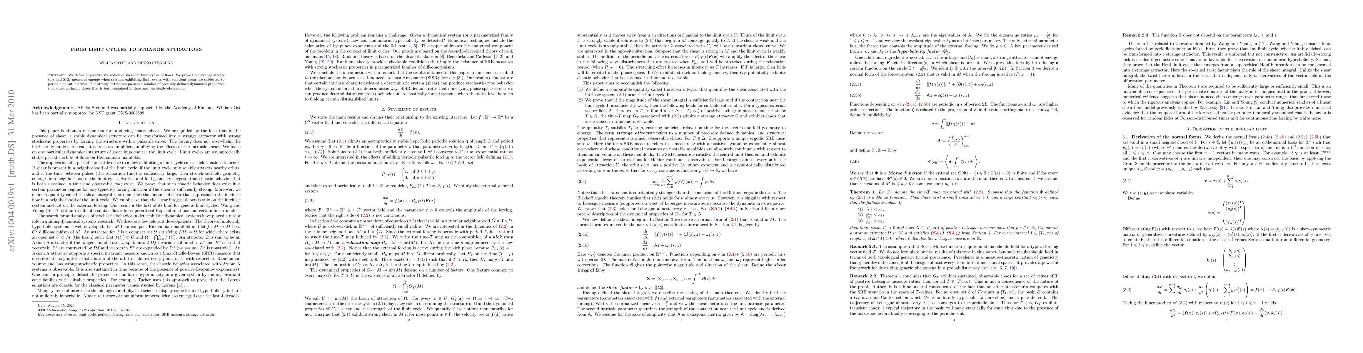 We define a quantitative notion of shear for limit cycles of flows. We prove that strange attractors and SRB measures emerge when systems exhibiting limit cycles with sufficient shear are subjected to periodic pulsatile drives. The strange attractors possess a number of precisely-defined dynamical properties that together imply chaos that is both sustained in time and physically observable.