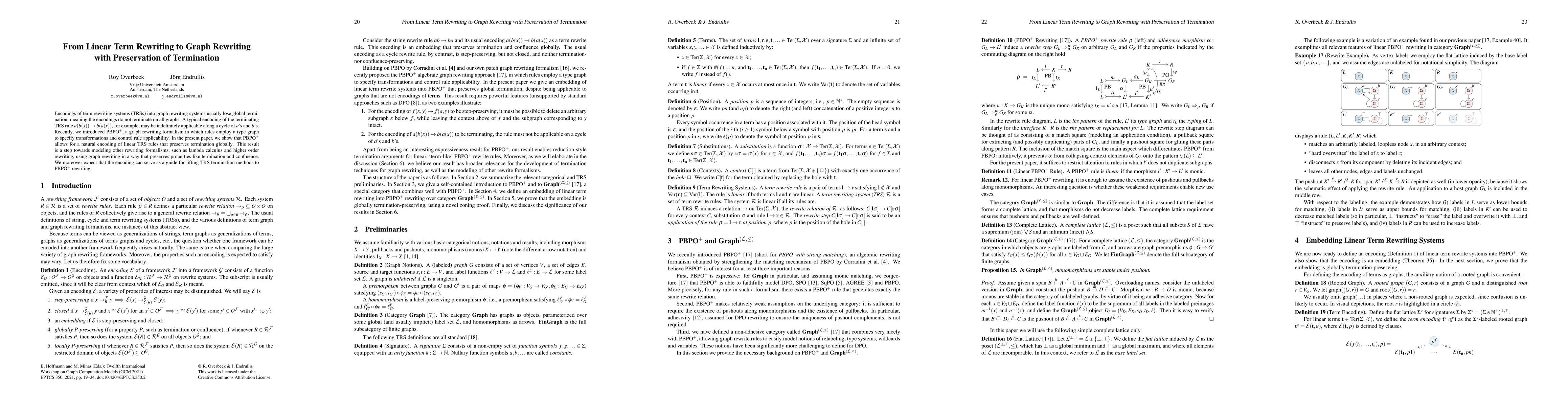 This paper presents an encoding method for linear term rewriting systems into graph rewriting systems using PBPO+, which preserves global termination. This advancement aims to model higher-order rewriting formalisms while maintaining properties like termination and confluence.