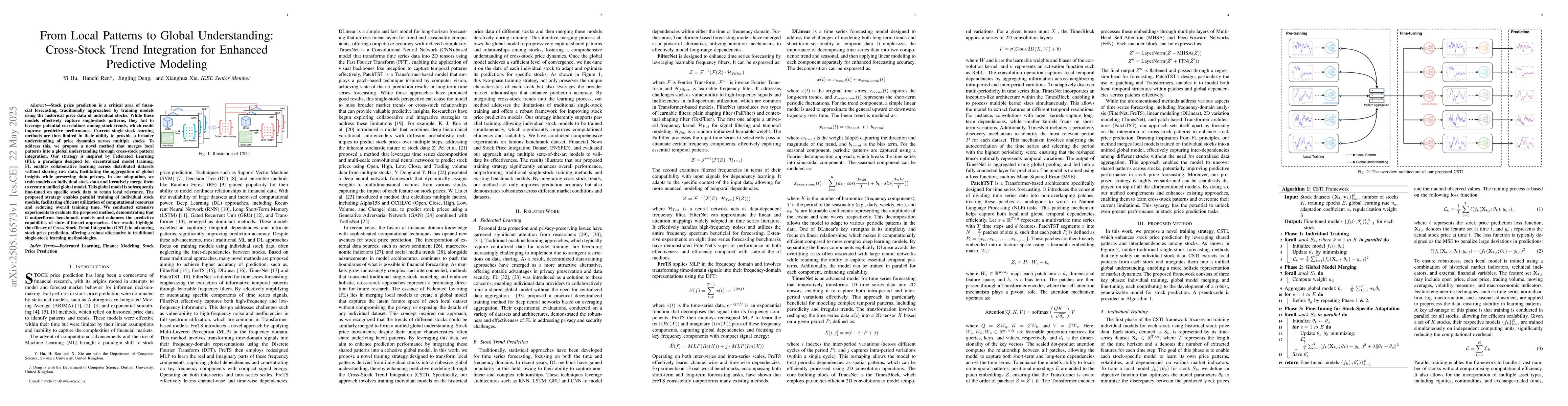 The main technical contribution is the development and validation of the Cross-Stock Trend Integration (CSTI) method, which effectively combines local stock patterns into a global understanding for improved predictive modeling.