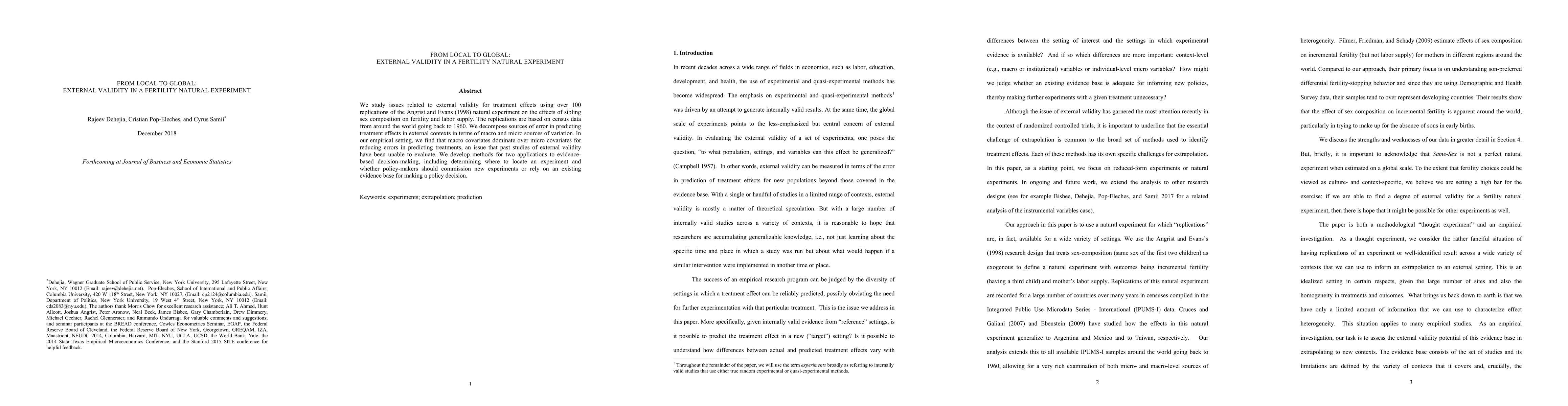 We study issues related to external validity for treatment effects using over 100 replications of the Angrist and Evans (1998) natural experiment on the effects of sibling sex composition on fertility and labor supply. The replications are based on census data from around the world going back to 1960. We decompose sources of error in predicting treatment effects in external contexts in terms of macro and micro sources of variation. In our empirical setting, we find that macro covariates dominate over micro covariates for reducing errors in predicting treatments, an issue that past studies of external validity have been unable to evaluate. We develop methods for two applications to evidence-based decision-making, including determining where to locate an experiment and whether policy-makers should commission new experiments or rely on an existing evidence base for making a policy decision.