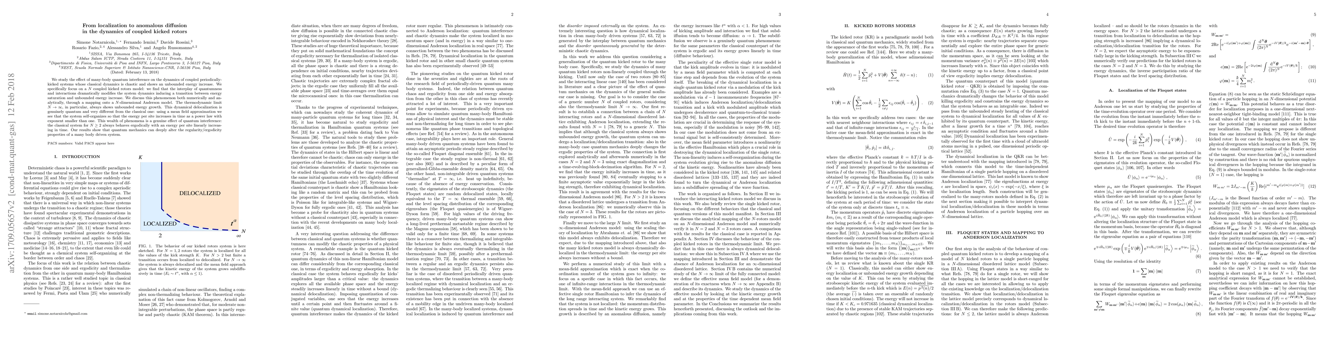 This paper investigates the impact of quantum interference on the dynamics of coupled kicked rotors, revealing a transition from localization to anomalous diffusion. Quantum effects lead to a modified energy growth pattern, distinct from classical ergodic behavior, showcasing the profound influence of quantum mechanics on many-body systems.