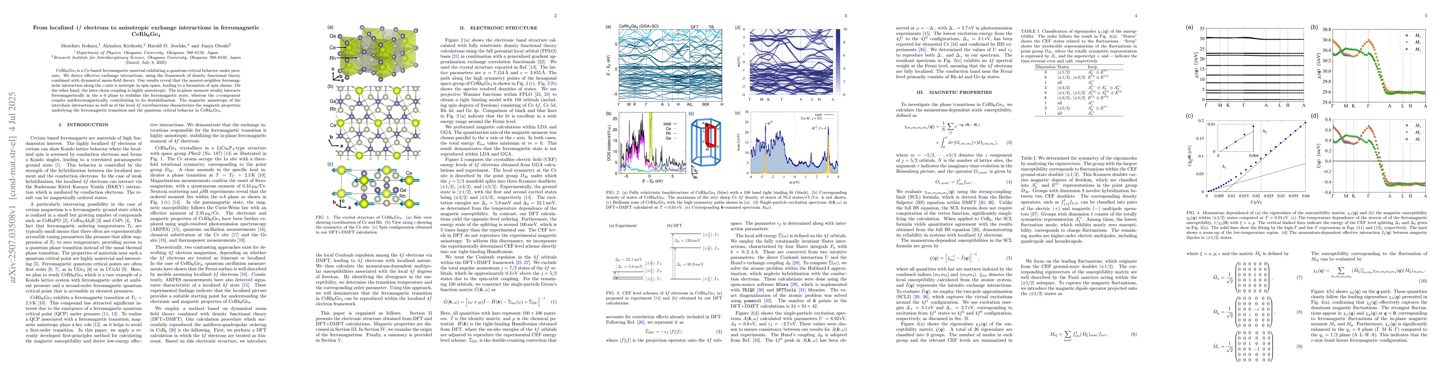 CeRh6Ge4 is a Ce-based ferromagnetic material exhibiting a quantum critical behavior under pressure. We derive effective exchange interactions, using the framework of density functional theory combined with dynamical mean-field theory. Our results reveal that the nearest-neighbor ferromagnetic interaction along the c-axis is isotropic in spin space, leading to a formation of spin chains. On the other hand, the inter-chain coupling is highly anisotropic: The in-plane moment weakly interacts ferromagnetically in the a--b plane to stabilize the ferromagnetic state, whereas the z-component couples antiferromagnetically, contributing to its destabilization. The magnetic anisotropy of the interchain interactions as well as of the local 4f wavefunctions characterizes the magnetic properties underlying the ferromagnetic transition and the quantum critical behavior in CeRh6Ge4.