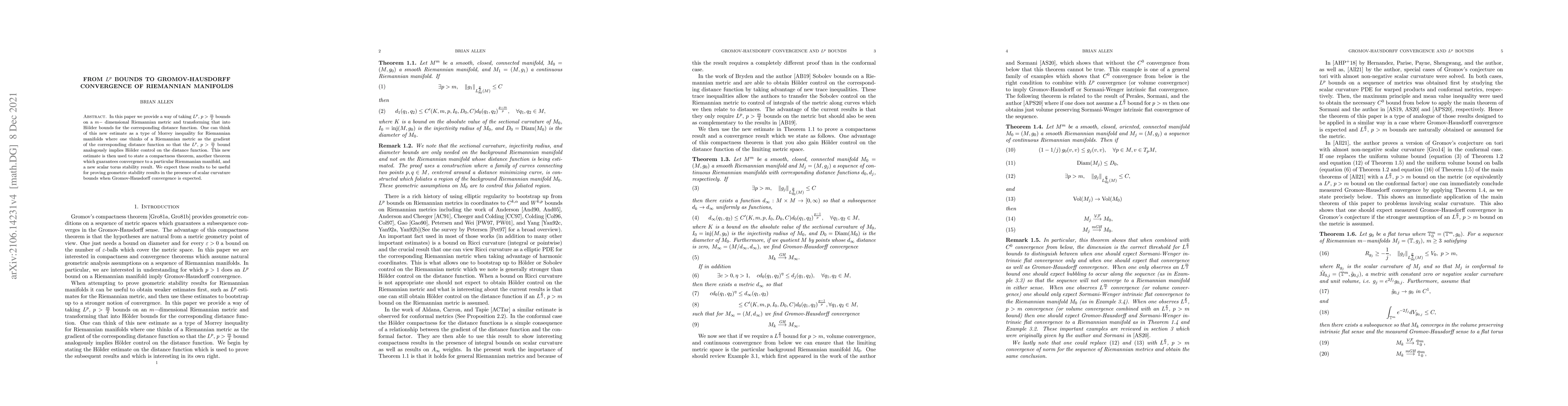 The paper introduces a novel way to transform $L^p$ bounds on Riemannian metrics into Hölder estimates for distance functions, leading to new compactness and convergence theorems.