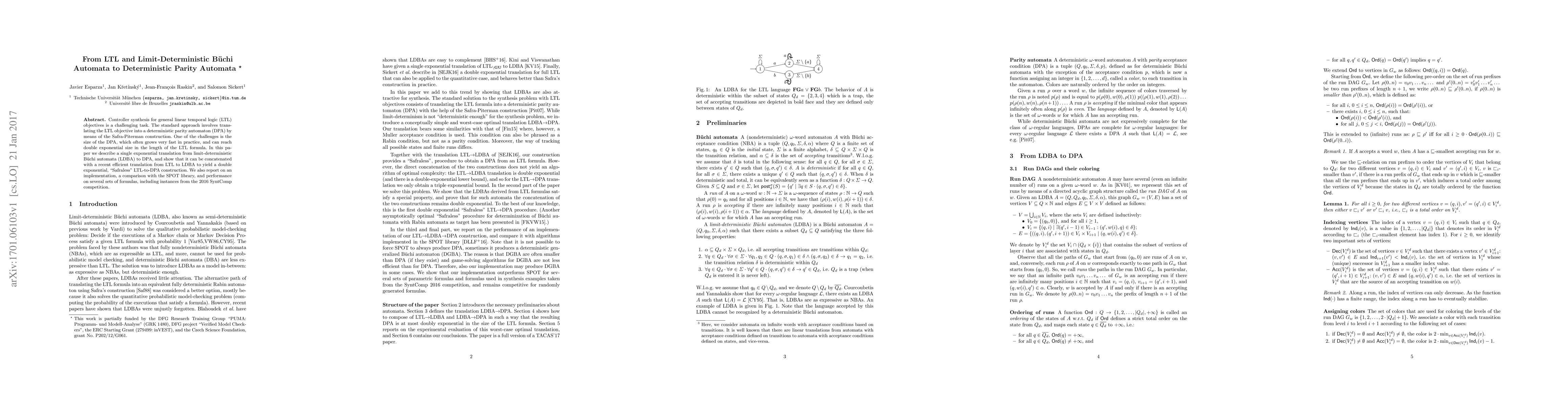 Controller synthesis for general linear temporal logic (LTL) objectives is a challenging task. The standard approach involves translating the LTL objective into a deterministic parity automaton (DPA) by means of the Safra-Piterman construction. One of the challenges is the size of the DPA, which often grows very fast in practice, and can reach double exponential size in the length of the LTL formula. In this paper we describe a single exponential translation from limit-deterministic B\"uchi automata (LDBA) to DPA, and show that it can be concatenated with a recent efficient translation from LTL to LDBA to yield a double exponential, \enquote{Safraless} LTL-to-DPA construction. We also report on an implementation, a comparison with the SPOT library, and performance on several sets of formulas, including instances from the 2016 SyntComp competition.