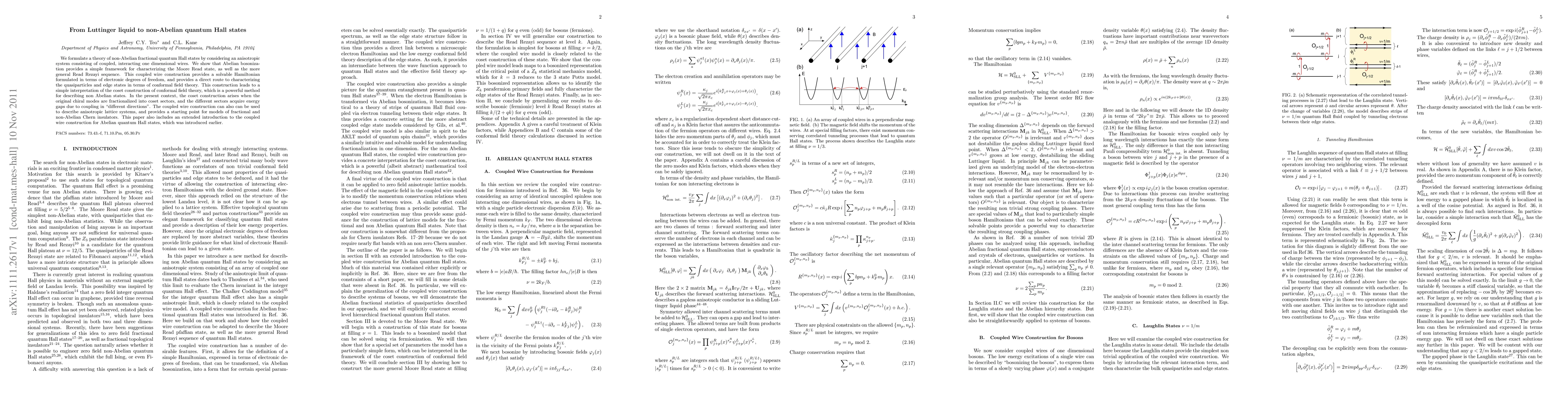 This paper develops a theory for non-Abelian fractional quantum Hall states via coupled, interacting one-dimensional wires, using Abelian bosonization to characterize the Moore Read state and Read Rezayi sequence. The coupled wire construction offers a solvable Hamiltonian and interprets the coset construction of conformal field theory for non-Abelian states.