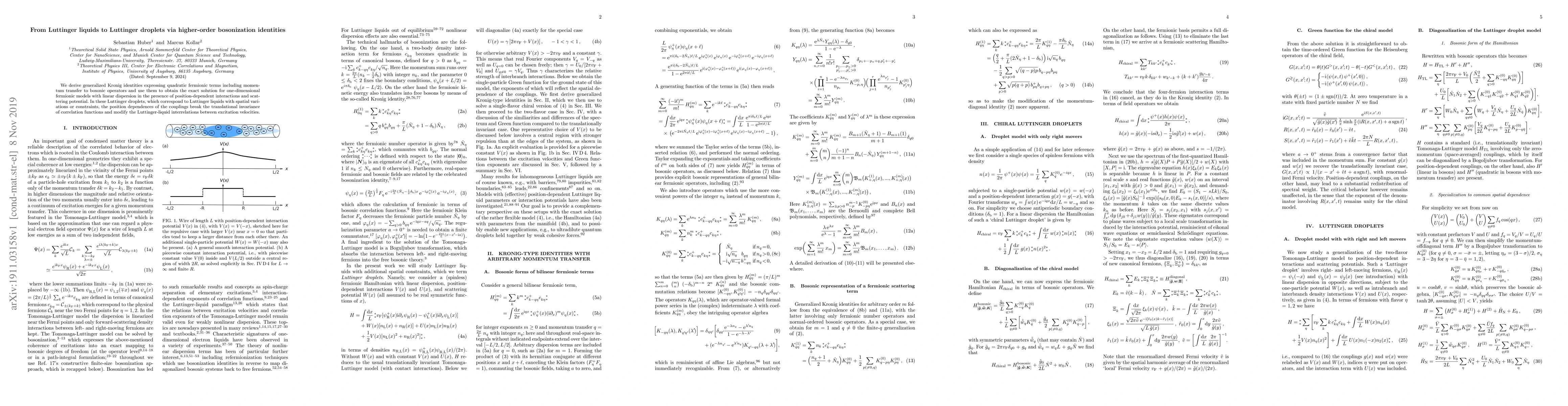 Researchers derived new mathematical tools to study fermionic models with position-dependent interactions, leading to the discovery of 'Luttinger droplets' that break translational invariance and modify Luttinger-liquid behavior.