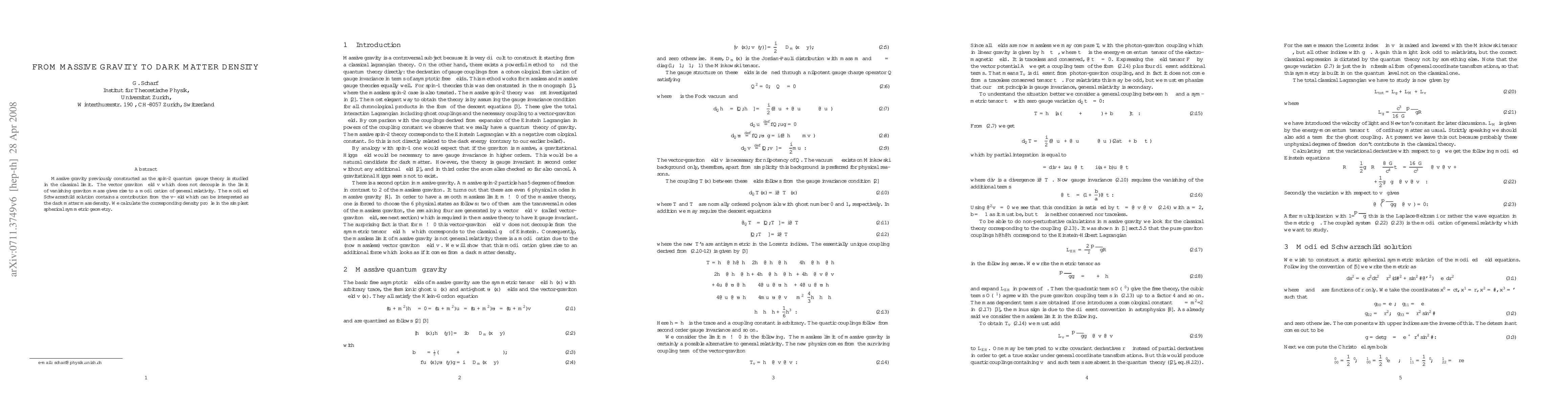 Massive gravity previously constructed as the spin-2 quantum gauge theory is studied in the classical limit. The vector-graviton field v which does not decouple in the limit of vanishing graviton mass gives rise to a modification of general relativity. The modified Schwarzschild solution contains a contribution which can be interpreted as the dark mass density. We calculate the density profile in the simplest spherically symmetric geometry.