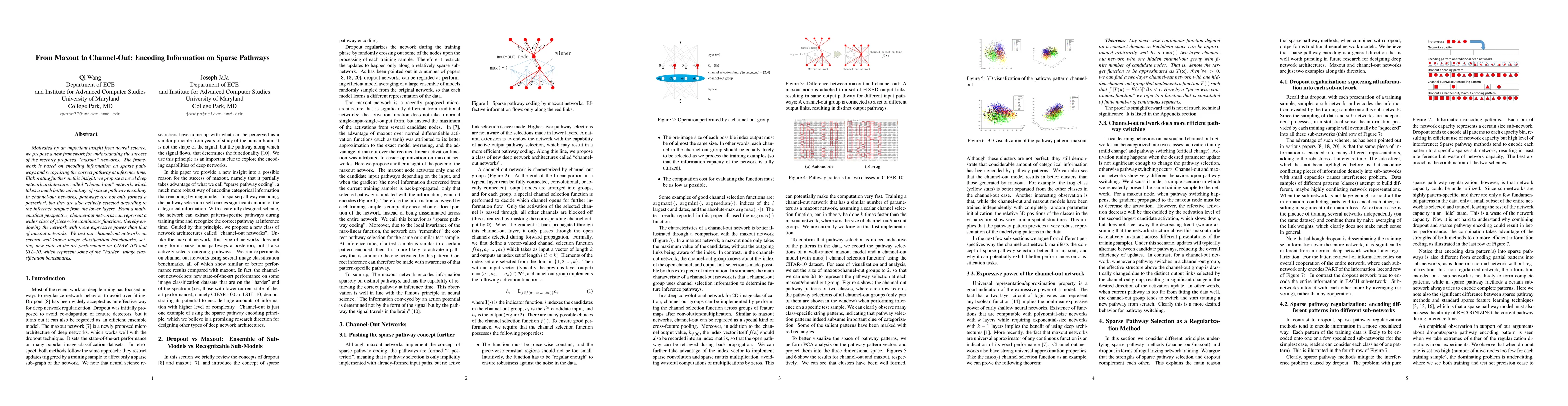 Motivated by an important insight from neural science, we propose a new framework for understanding the success of the recently proposed "maxout" networks. The framework is based on encoding information on sparse pathways and recognizing the correct pathway at inference time. Elaborating further on this insight, we propose a novel deep network architecture, called "channel-out" network, which takes a much better advantage of sparse pathway encoding. In channel-out networks, pathways are not only formed a posteriori, but they are also actively selected according to the inference outputs from the lower layers. From a mathematical perspective, channel-out networks can represent a wider class of piece-wise continuous functions, thereby endowing the network with more expressive power than that of maxout networks. We test our channel-out networks on several well-known image classification benchmarks, setting new state-of-the-art performance on CIFAR-100 and STL-10, which represent some of the "harder" image classification benchmarks.