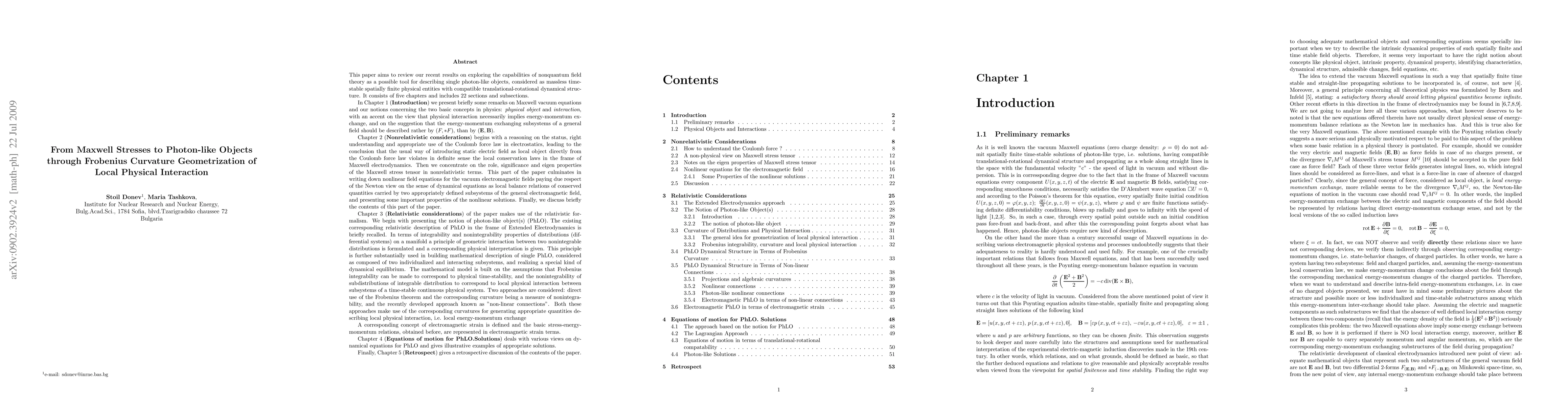 This paper aims to review our recent results on exploring the capabilities of non-quantum field theory as a possible tool for describing single photon-like objects, considered as massless time-stable spatially finite physical entities with compatible translational-rotational dynamical structure. The main idea is to interpret the local physical interaction as available Frobenius curvature. It consists of five chapters and includes 22 sections and subsections.