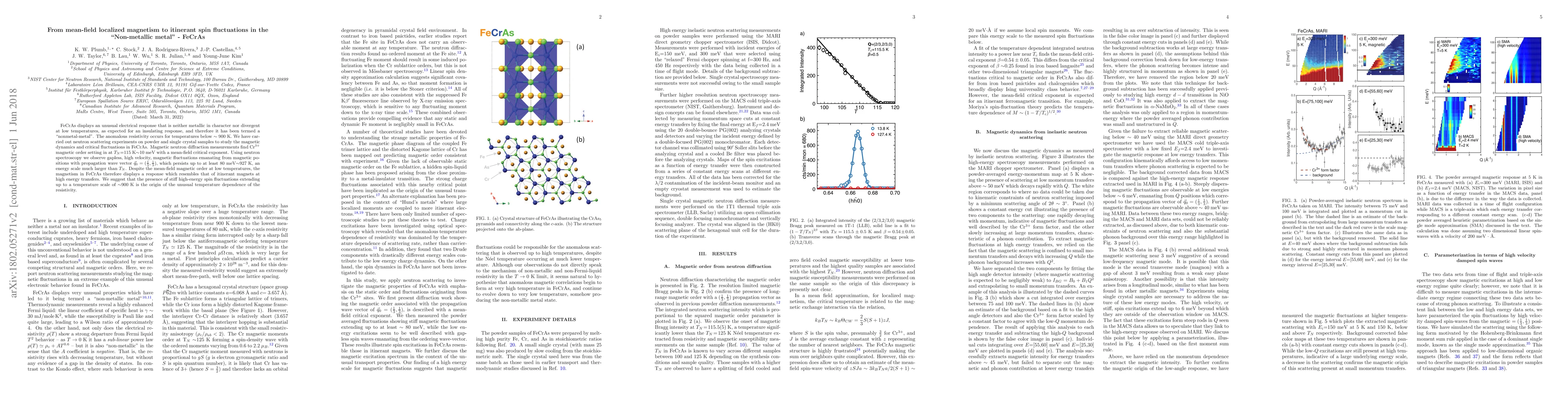FeCrAs exhibits "nonmetal-metal" electrical behavior, characterized by neither typical metallic nor insulating responses. Neutron scattering reveals Cr3+ magnetic order at 115 K, but high-energy neutron spectroscopy detects itinerant-like spin fluctuations, suggesting the unusual resistivity behavior stems from these stiff magnetic fluctuations.