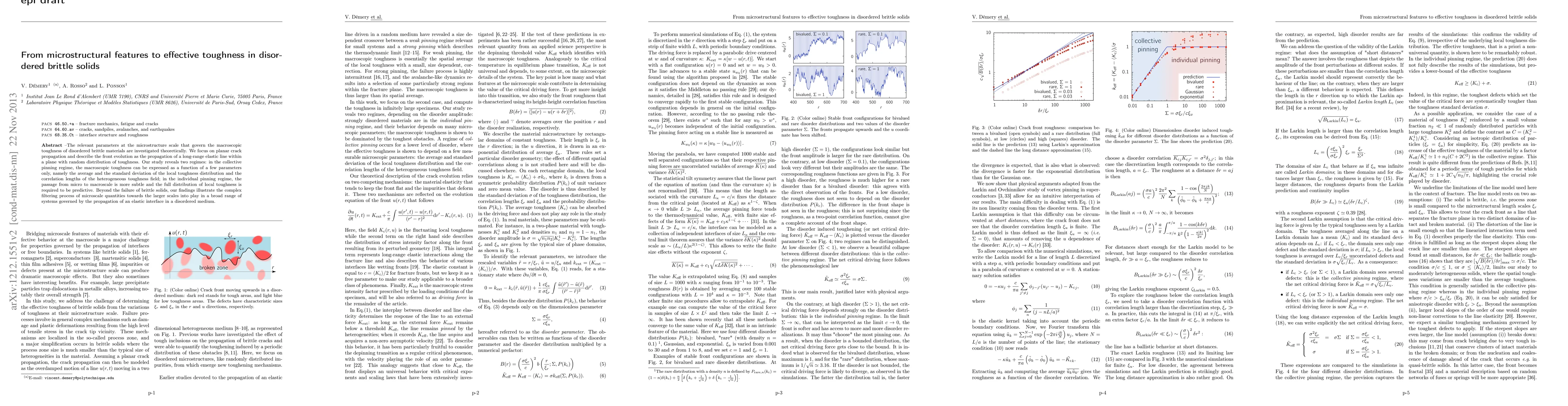 This study investigates how microstructure affects toughness in disordered brittle materials, finding two regimes: one with few parameters controlling macroscopic toughness and another requiring full local toughness distribution.