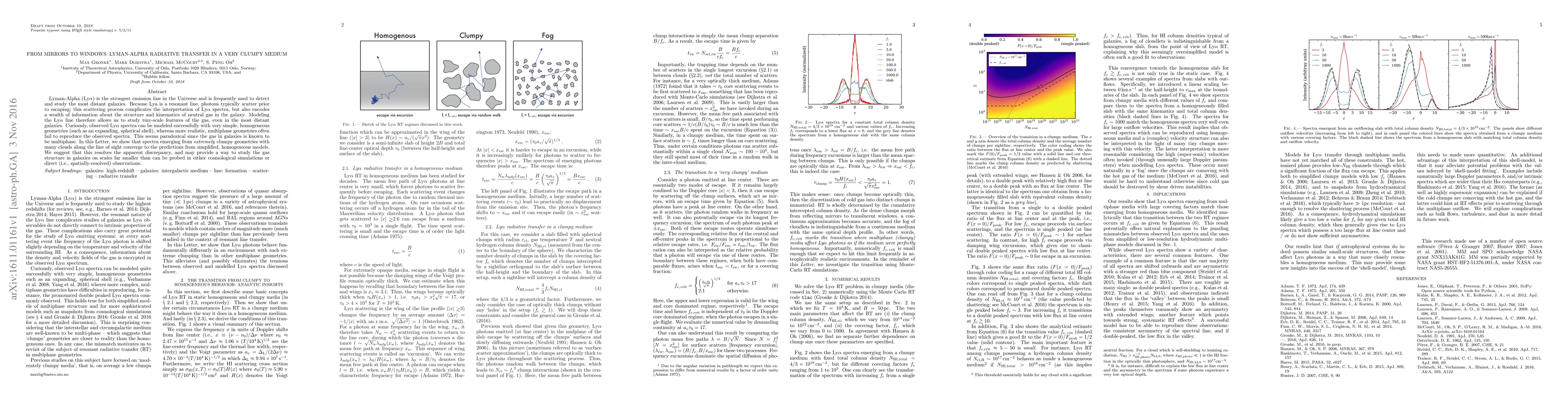 This paper investigates the radiative transfer of Lyman-Alpha (Ly$\alpha$) photons through highly clumpy, multiphase gas in galaxies, demonstrating that such complex geometries can yield spectra similar to those from simple, homogeneous models. The findings suggest a resolution to the paradox of observed Ly$\alpha$ spectra and offer a method to study gas structure on small scales.
