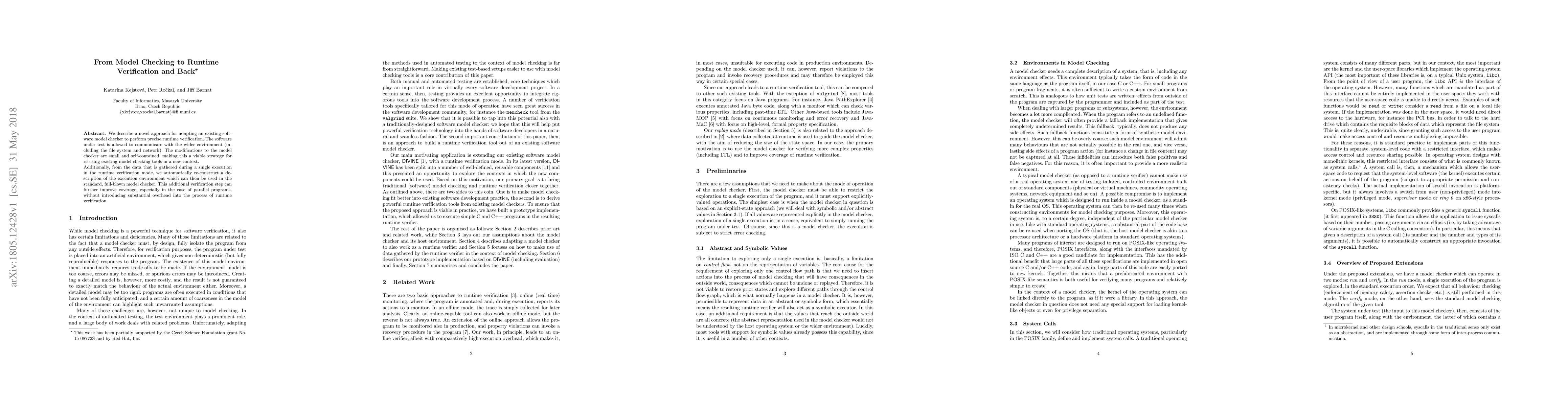 This research introduces a method to adapt model checkers for runtime verification, requiring minimal modifications. It also details an automatic reconstruction of the execution environment from runtime data, which can enhance verification coverage, particularly for parallel programs, without significant overhead.