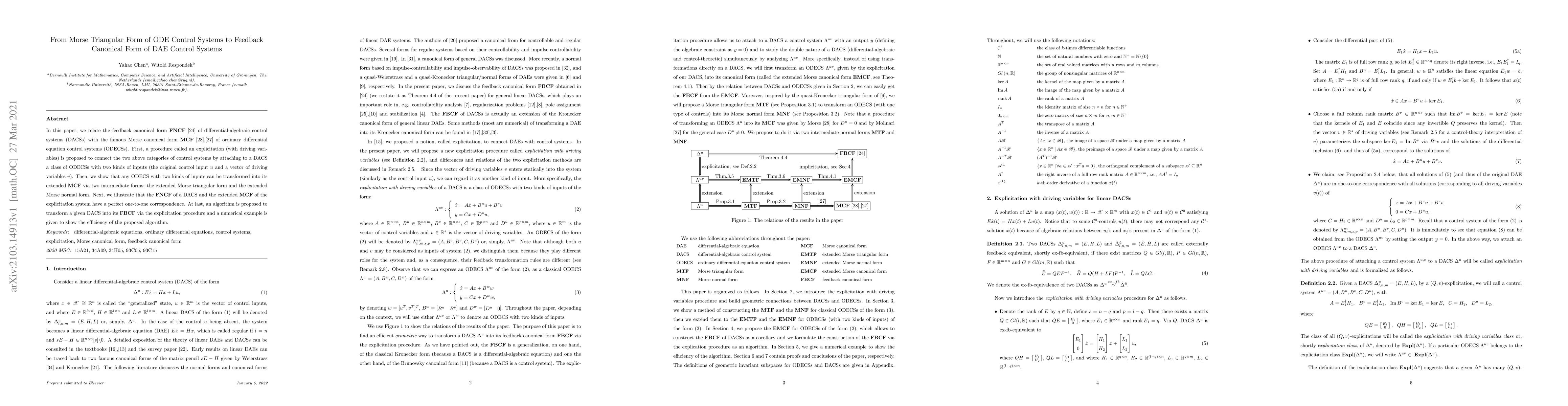 This paper establishes a connection between the feedback canonical form (FNCF) of differential-algebraic control systems (DACSs) and the Morse canonical form (MCF) of ordinary differential equation control systems (ODECSs) through an explicitation procedure. It demonstrates a transformation pathway from DACSs to ODECSs and shows a one-to-one correspondence between the FNCF of DACSs and the extended MCF of the explicitation system, concluding with an algorithm for DACS transformation.