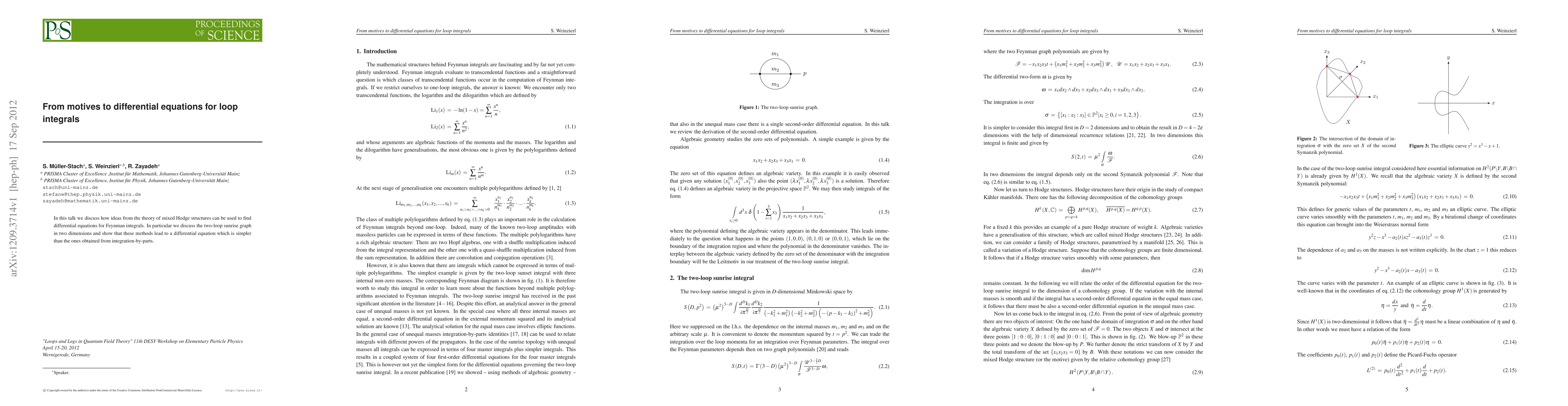 In this talk we discuss how ideas from the theory of mixed Hodge structures can be used to find differential equations for Feynman integrals. In particular we discuss the two-loop sunrise graph in two dimensions and show that these methods lead to a differential equation which is simpler than the ones obtained from integration-by-parts.