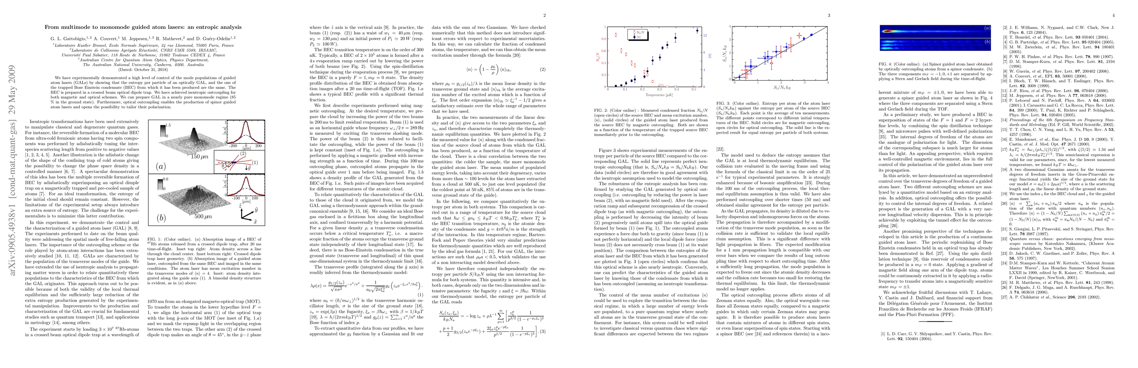 This paper demonstrates experimental control over the mode populations of guided atom lasers, achieving nearly pure monomode states (85% in the ground state) and showing equal entropy per particle between the atom laser and the initial Bose-Einstein condensate, indicating isentropic outcoupling. Optical outcoupling also enables the production of spinor guided atom lasers with tailored polarization.