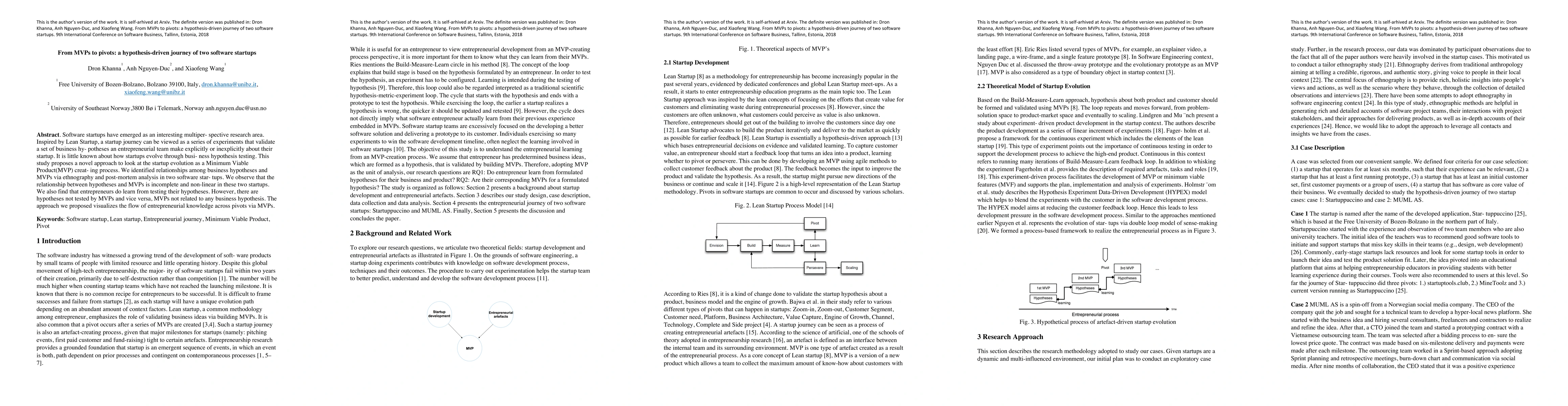 Software startups have emerged as an interesting multiperspective research area. Inspired by Lean Startup, a startup journey can be viewed as a series of experiments that validate a set of business hypotheses an entrepreneurial team make explicitly or inexplicitly about their startup. It is little known about how startups evolve through business hypothesis testing. This study proposes a novel approach to look at the startup evolution as a Minimum Viable Product(MVP) creat- ing process. We identified relationships among business hypotheses and MVPs via ethnography and post-mortem analysis in two software star- tups. We observe that the relationship between hypotheses and MVPs is incomplete and non-linear in these two startups. We also find that entrepreneurs do learn from testing their hypotheses. However, there are hypotheses not tested by MVPs and vice versa, MVPs not related to any business hypothesis. The approach we proposed visualizes the flow of entrepreneurial knowledge across pivots via MVPs.