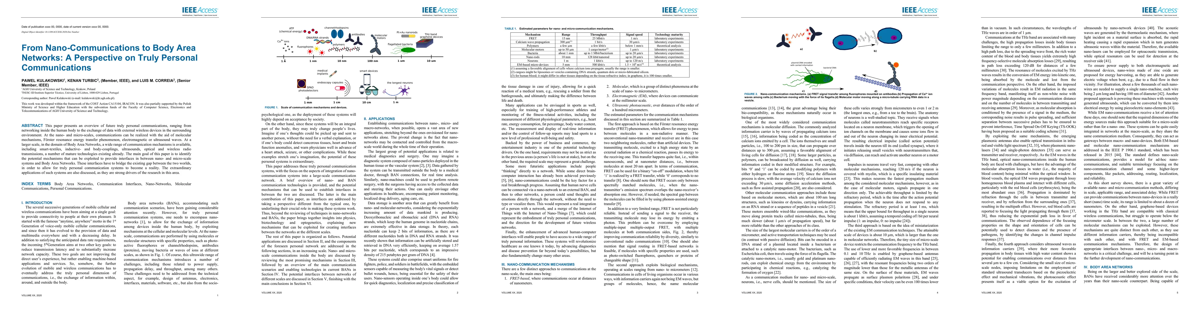 This paper explores the future of truly personal communications, spanning from nano-scale molecular interactions to Body Area Networks, and identifies potential bridging mechanisms to connect these diverse communication systems. It highlights the applications driving this research, aiming to make advanced personal communication systems a reality.