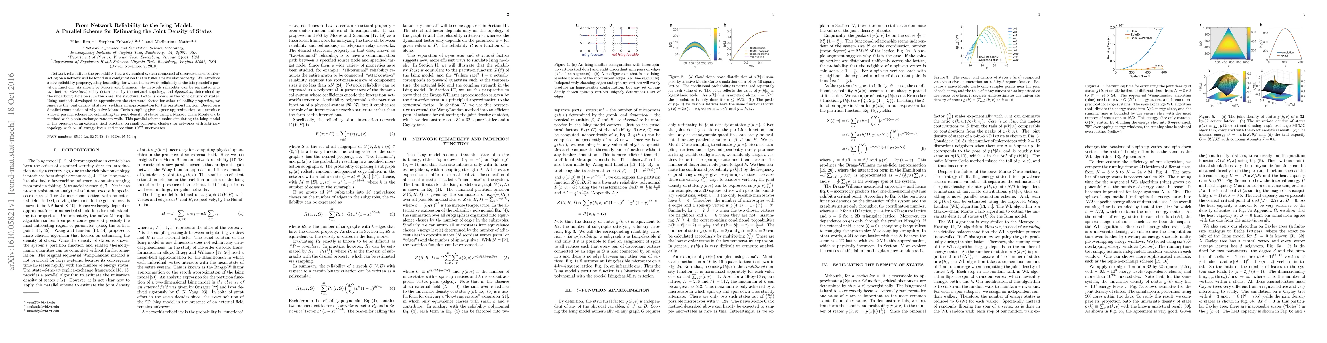 This paper introduces a new reliability property called Ising feasibility, where network reliability corresponds to the Ising model's partition function. It presents a novel parallel scheme using Markov chain Monte Carlo and spin exchange random walk to improve the estimation of the joint density of states, making simulations feasible on small clusters for networks with up to 308 microstates.