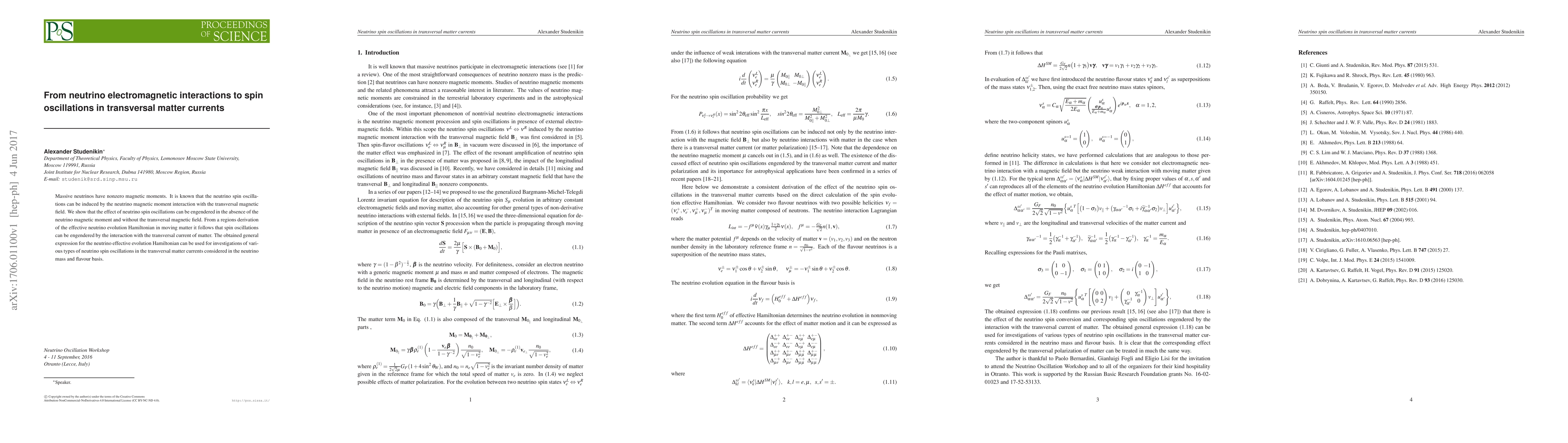 This paper explores how neutrinos' nonzero magnetic moments can induce spin oscillations through interactions with transversal matter currents, deriving a general effective neutrino evolution Hamiltonian for such scenarios in both neutrino mass and flavor bases. The findings provide a framework for studying various types of neutrino spin oscillations in moving matter.